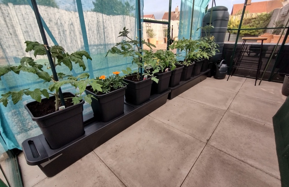 The system comes with Nutrigrow feed and you just make up a batch and fill the 30L reservoir, feeder mats ( capillary matting ) wick water from the reservoir into the pots which gives a perfect watering.