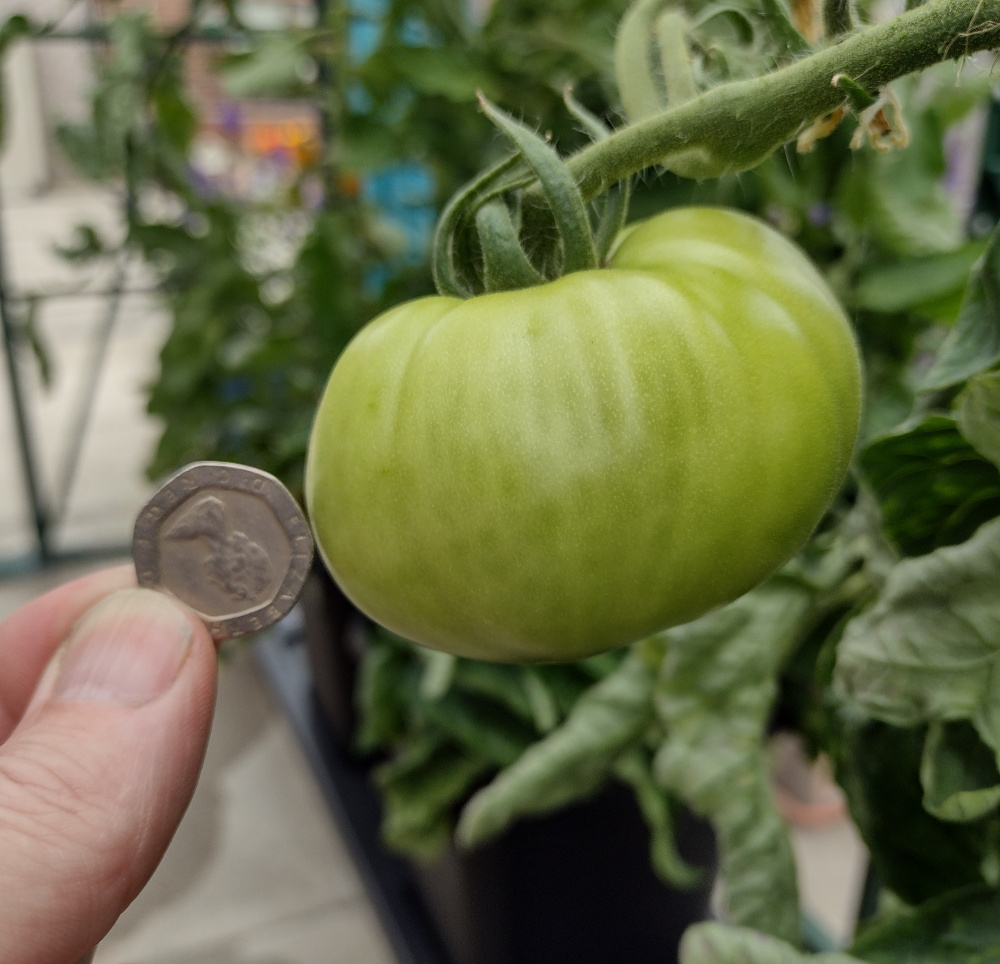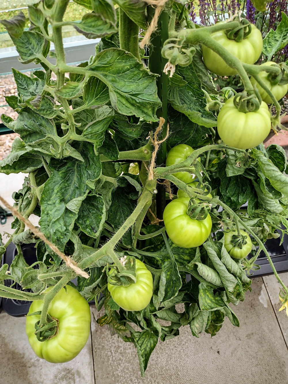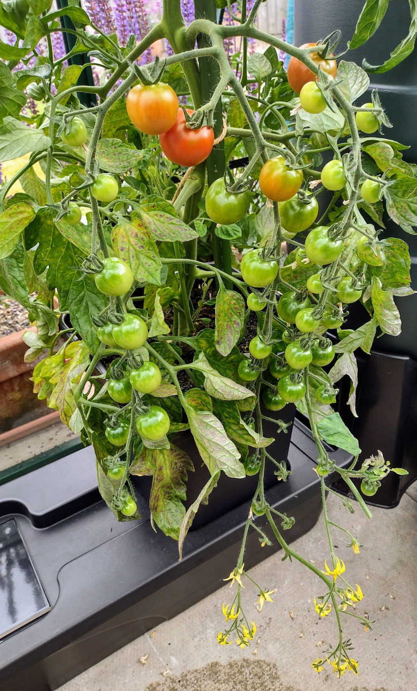 The toms are coming on nicely and some are starting to ripen, though with the rising temperatures the plants are really suffering with the extreme heat in the greenhouse.