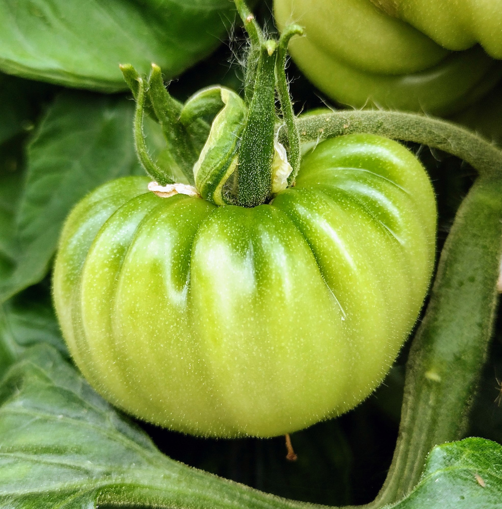 I have my first ripe tomato, a Bloody Butcher. Same variety was first last year at exactly the same time. And, as last year, it's just one. But last year, the loopy dog ate it. She's barred this year!