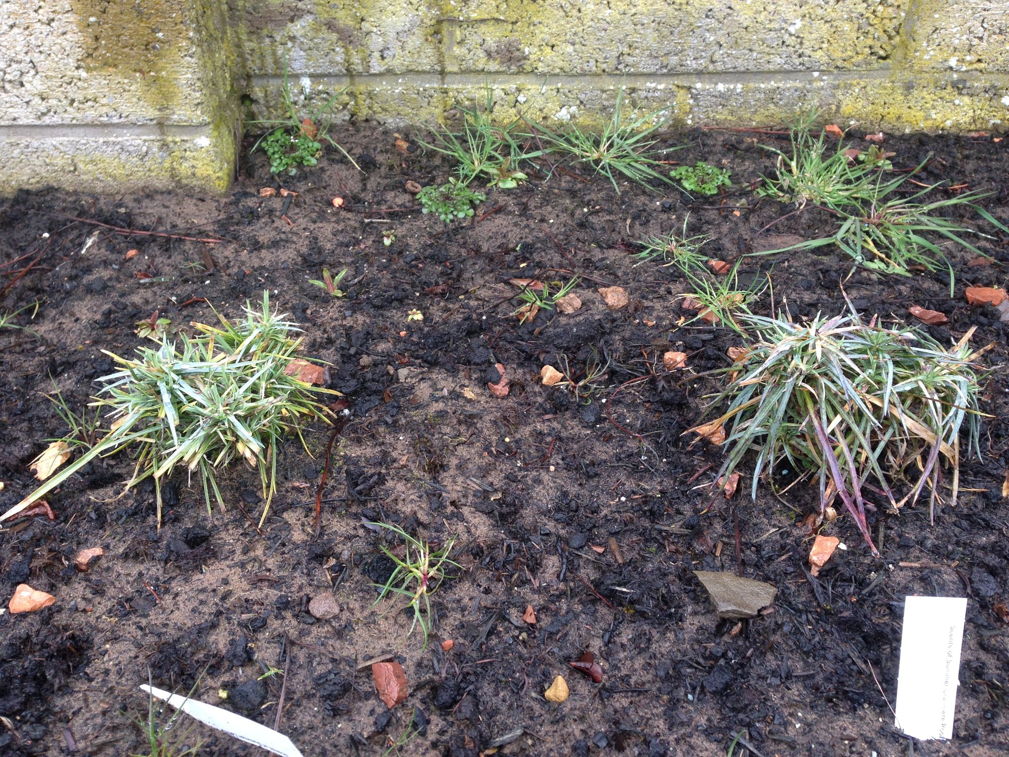 Autumn planting tends to suit more moisture loving plants. Plants like Dianthus are better planted in spring. But it’s still there, and I’m sure will start to grow now. When not in flower, they do look like that anyway. All newly planted designs tend to look sparse and dotted about. Once the warmth sets in, they will grow.