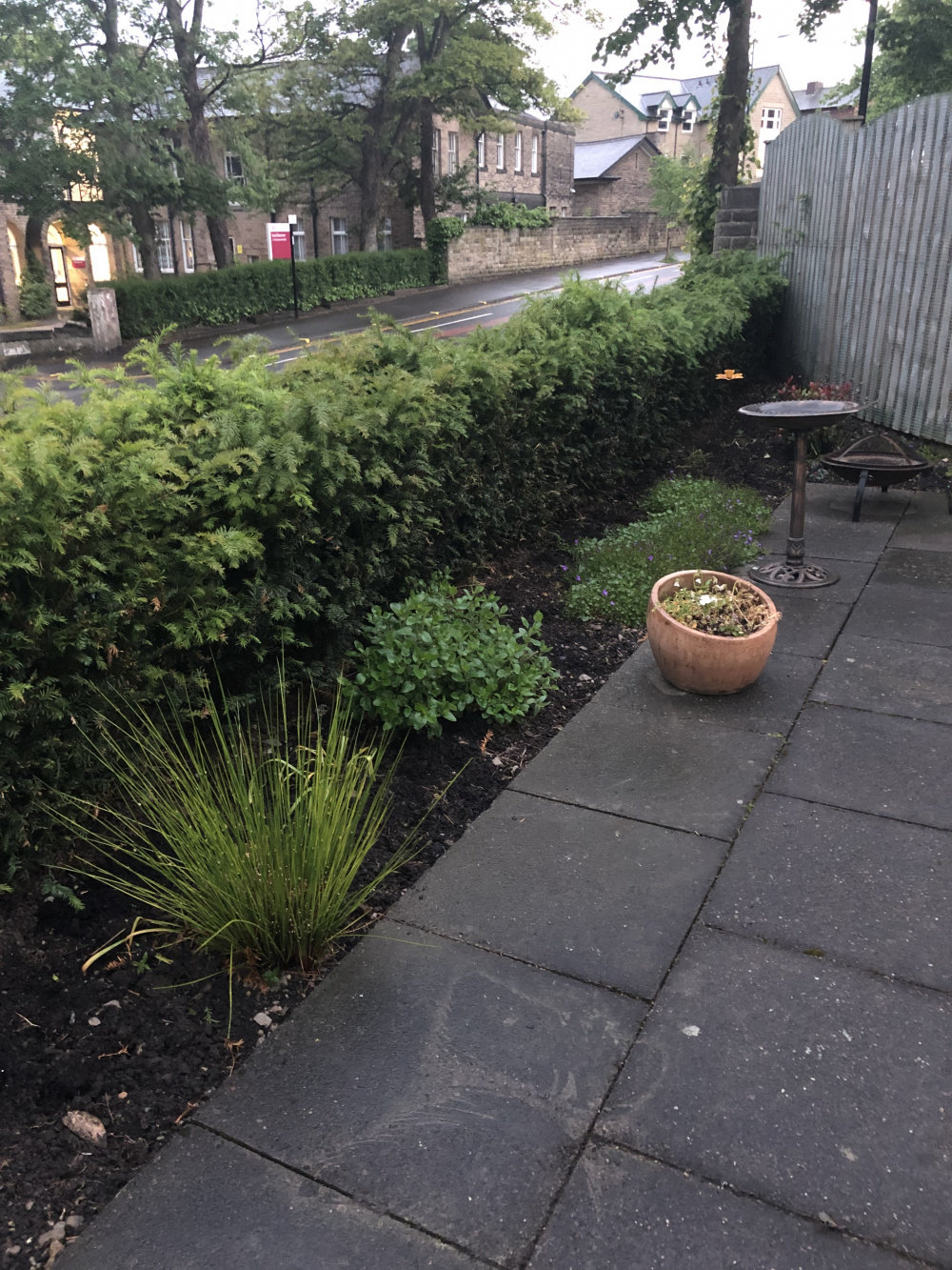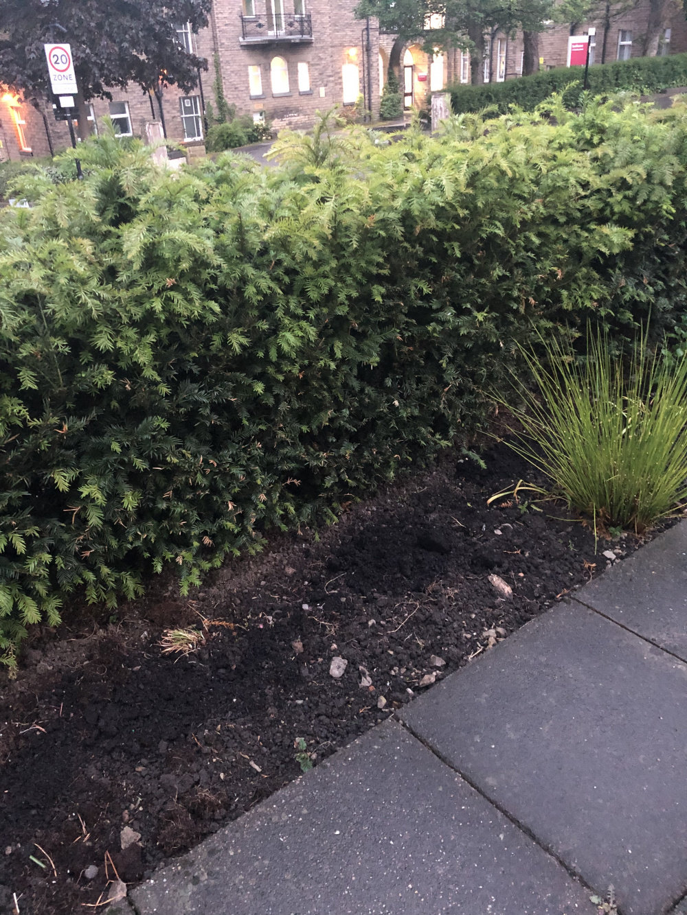 I laid in new, taller Yew's which after 6 months have died as (see the brown ones).