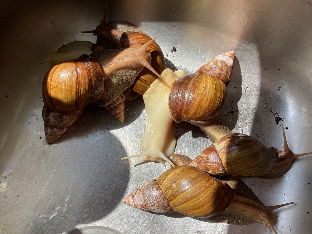Today's top tip: I weeded out some nettles this week and left them in the sun to dry for a few days. The snail seems to really love the dried leaves. I've just been chucking the whole nettles tips in the tank with him but apparently you can grind them up with other things like sunflower seeds and dried mealworms and make a paste for them. I'm going to try him on that later.