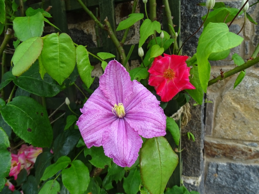Another early clematis. Planted out last autumn and now showing it's first flower (just allowed 3 or 4 buds this year, pinched out the rest). The leaflet tells me it is a late flowering variety, July - October.