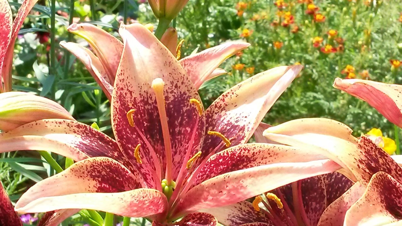 What beautiful flowers on these pictures, and how is that grass so green? Our lawn is just crunchy and brown right now.