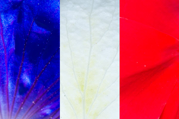 To celebrate today's French National Day I got some help from the following 3 flowers in my garden (from left to right):