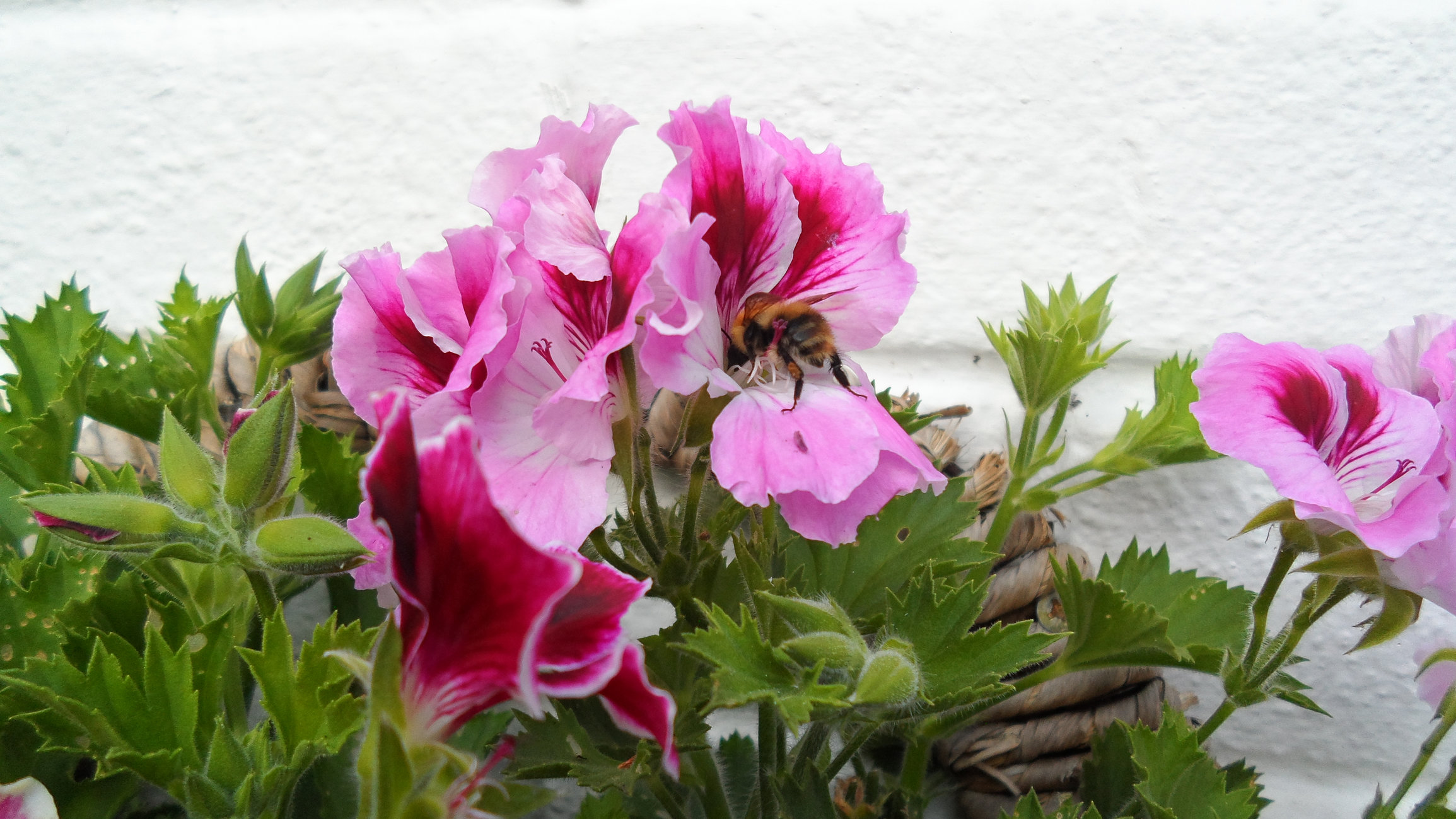 Thanks MrsGarden the bee is on a pelargonium, the two above are a white buddleia dwarf type and the other is a close up of a Hydrangea sorry cannot remember the name I'm bad for that