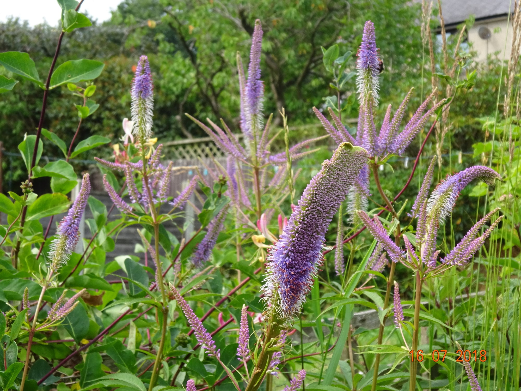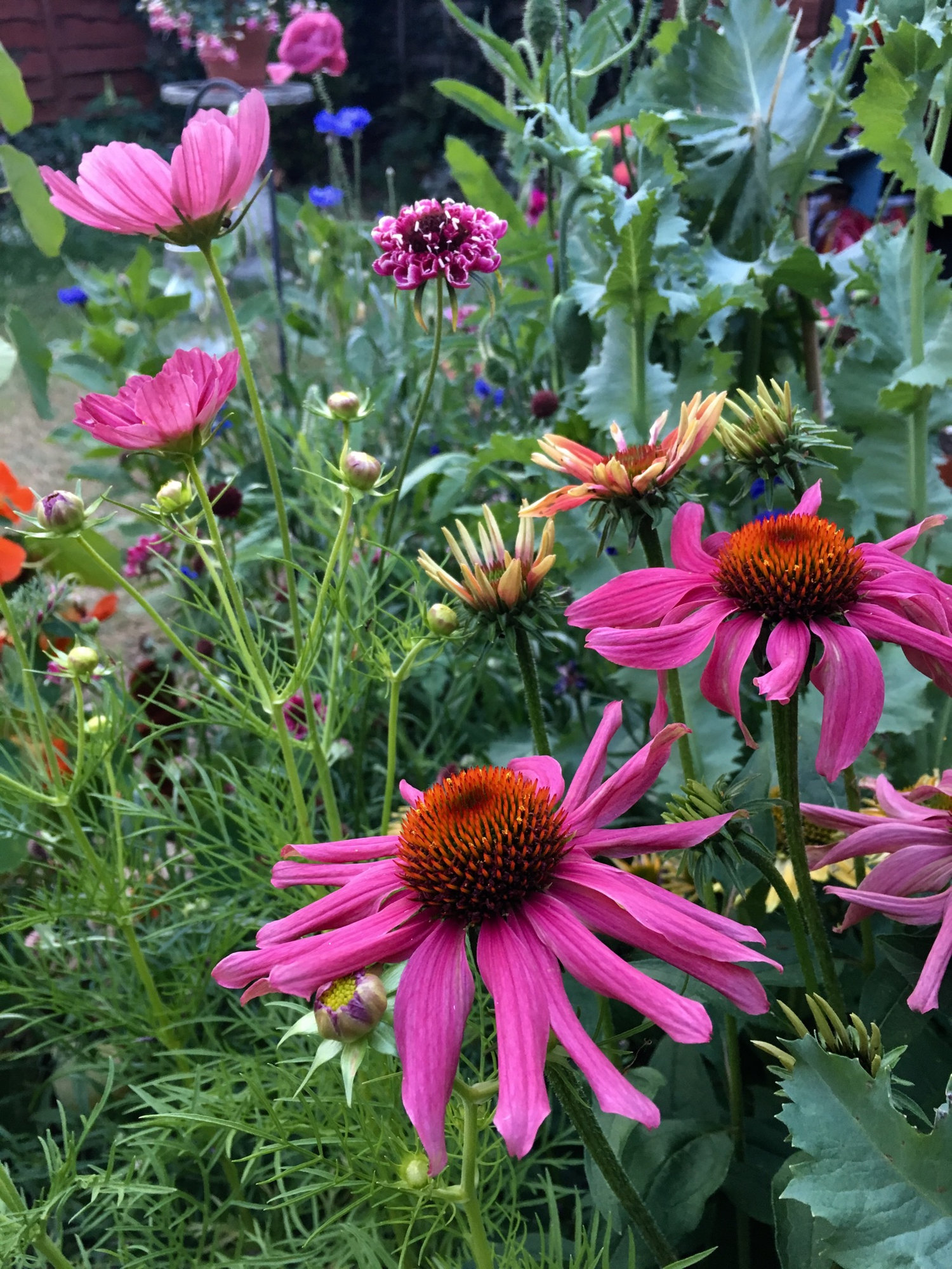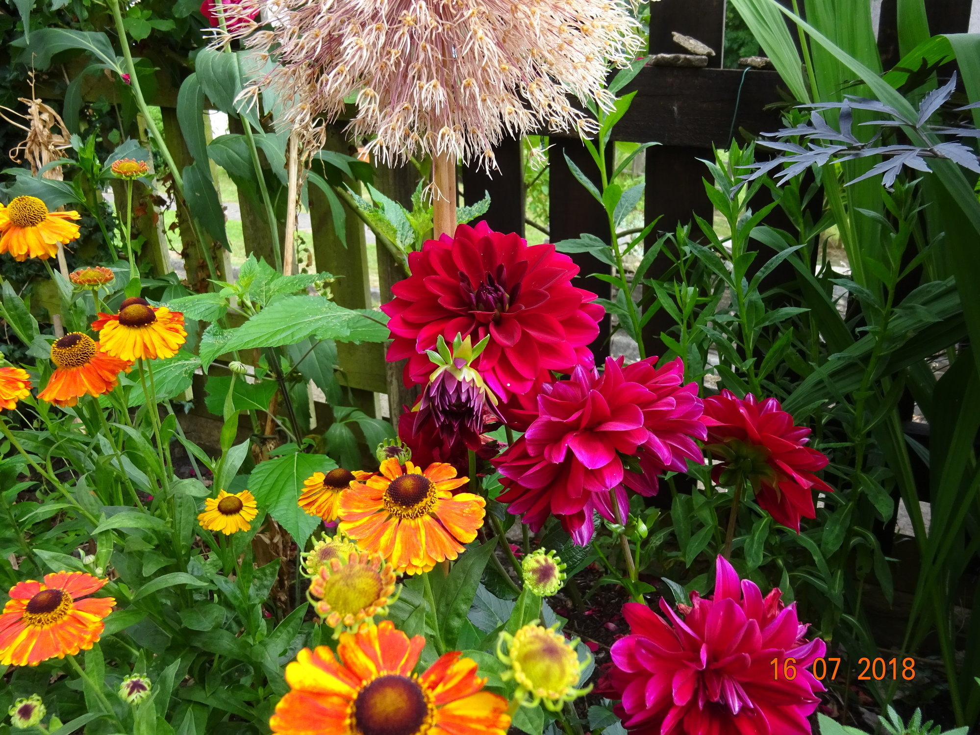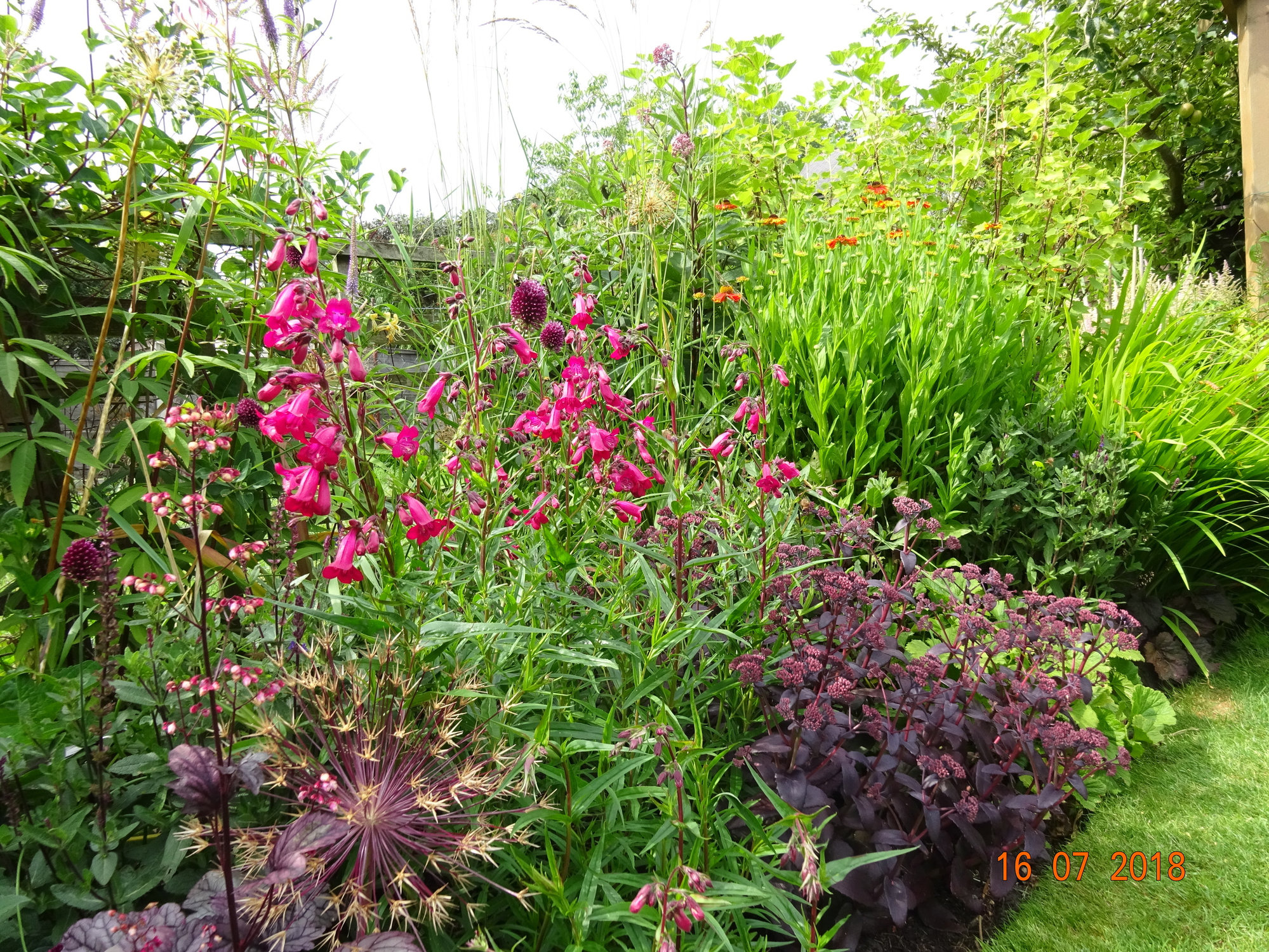 Part of the border I have recently replanted, starting to fill in now. Penstemon Garnet - sedum Jose aubriene - penstenum rubra behind penstemon - pervoskia somewhere and various other plants. I did plant some allium summer drummer around there no sign of flowers yet. Last year its was just a giant clump of rudbeckia goldstrum which I move just to the left of this picture.