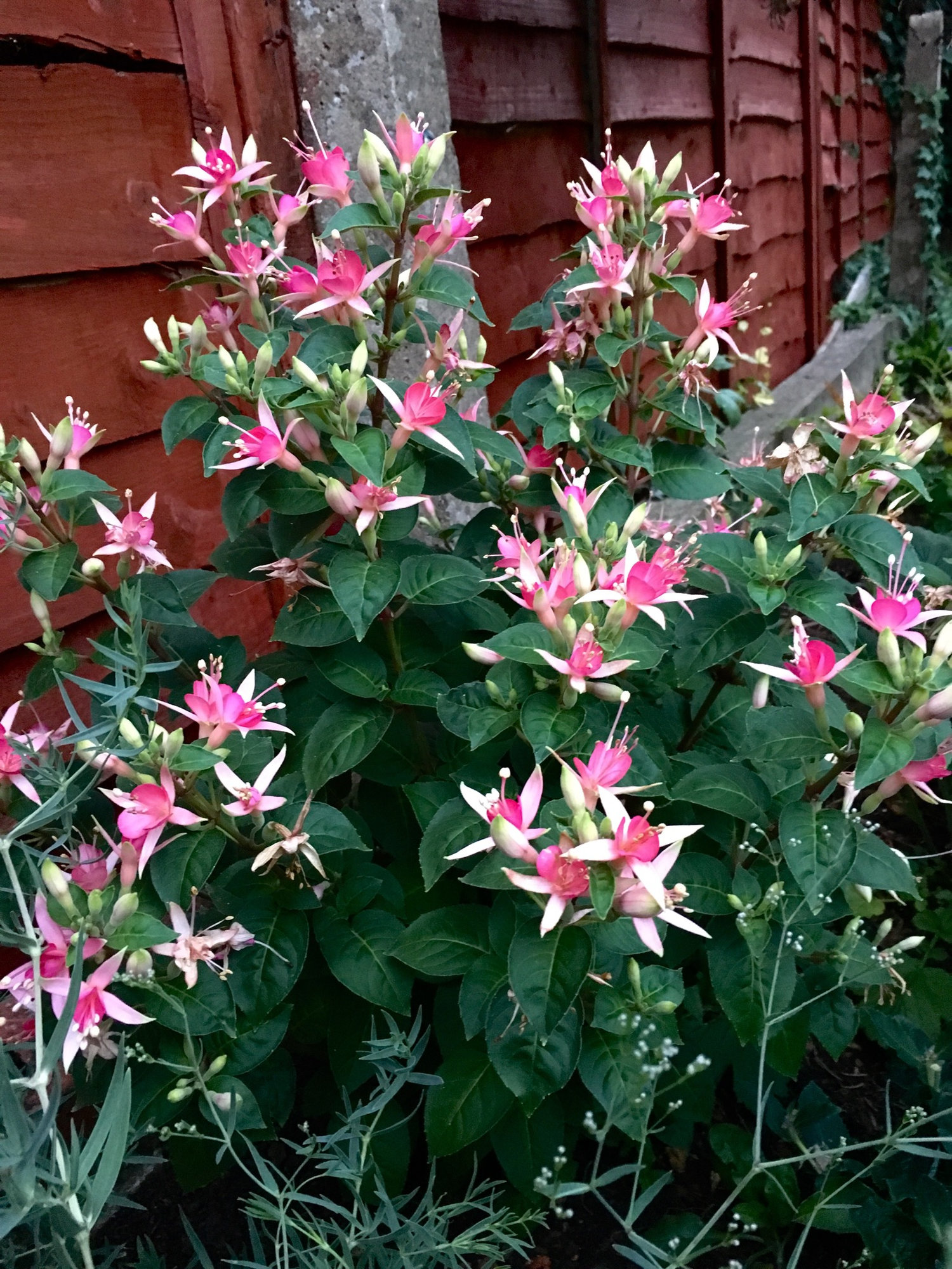 Some photos from this evening, including a fuchsia that sparkles and glows in the evening light.
