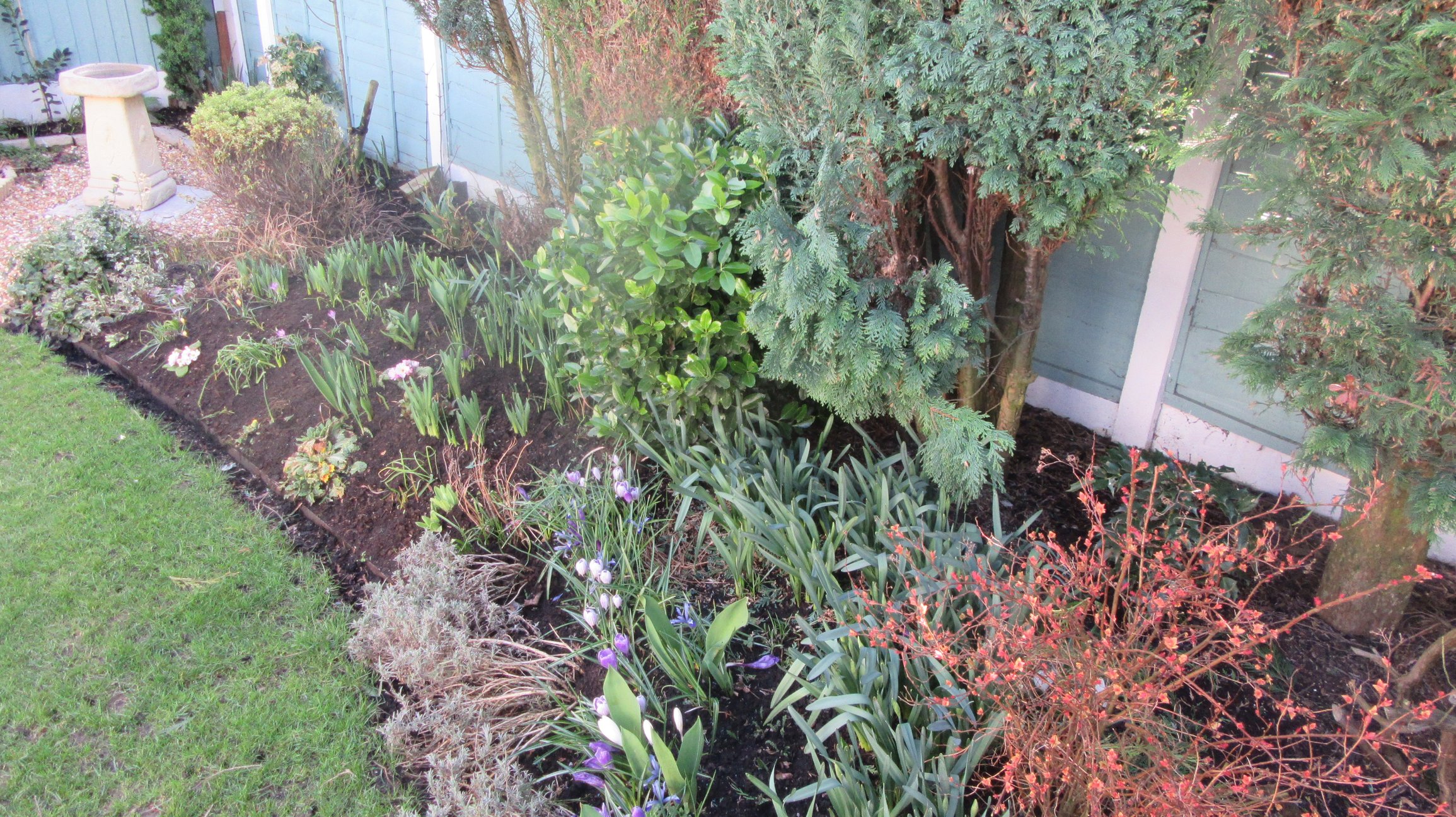 Spring time flowers starting to come through everyday now. Managed to clean the garden of mold and moss for now and have brought in new gavel for round the bird bath and a small amount to the circle patio as a new garden wall will be added replacing the wooden logs at last. Other plants are coming through as well and the other main plants are coming to life now new bubs ready to open