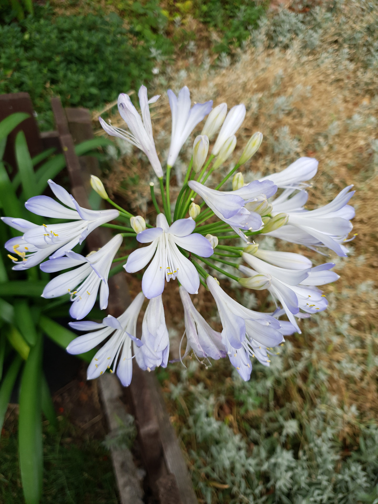 Agapanthus (Midnight Blue? or Midnight star?), with some African Daisies in background (second flush). I am chuffed these have thrived despite the heavy rain.