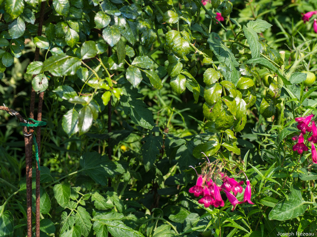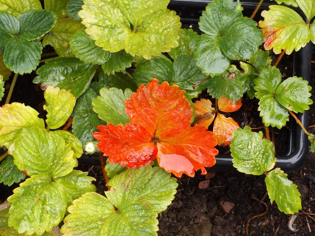 I loved this single red leaf on some strawberries The little Agastaches I grew from seed a couple of years ago are still flowering away and attracting lots of bees, wasps and hoverflies though Last week - some blooms appearing on the Oakleaf Hydrangea too