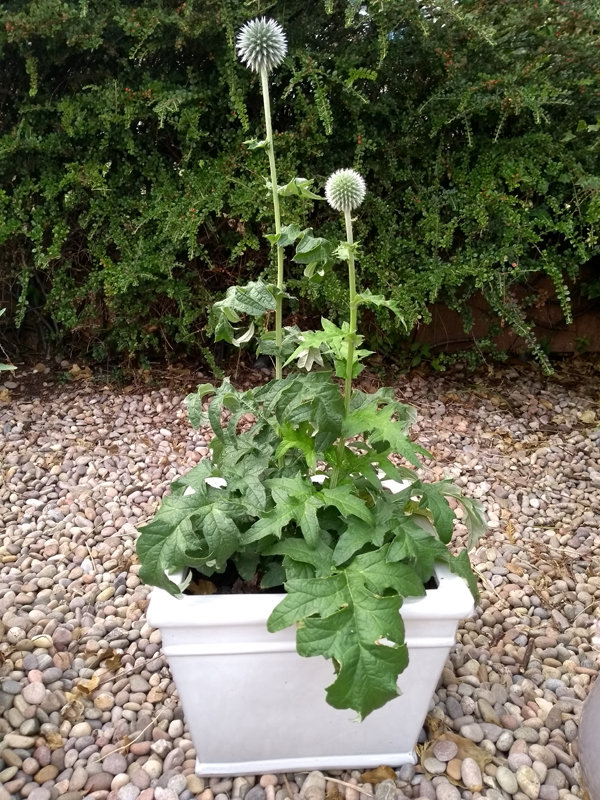 ... on the other hand I'm impatiently waiting for my Taplow Blue globe thistle to turn blue. I acquired the plant about six weeks ago.