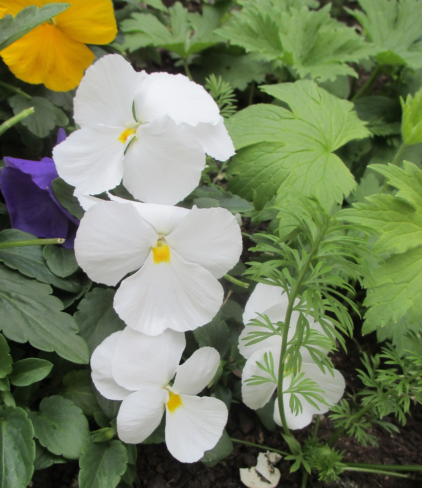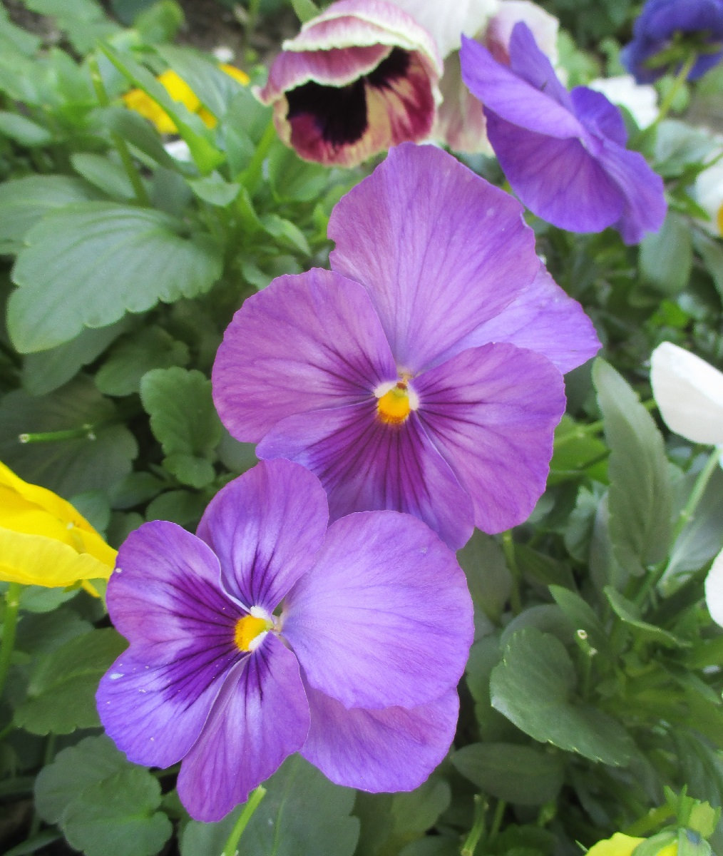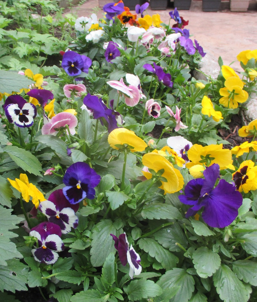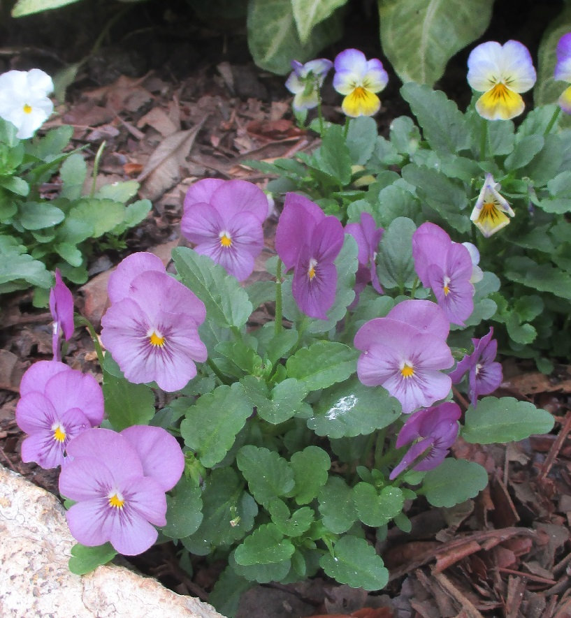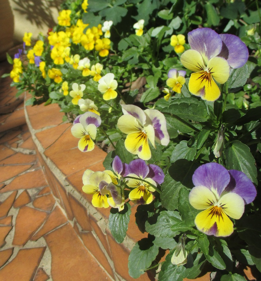 Pansies and violas have been the highlights of this winter, many of them spontaneous seedlings from last year's crop, the others grown from seed in the middle of (quite hot) summer...