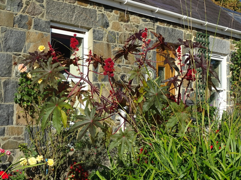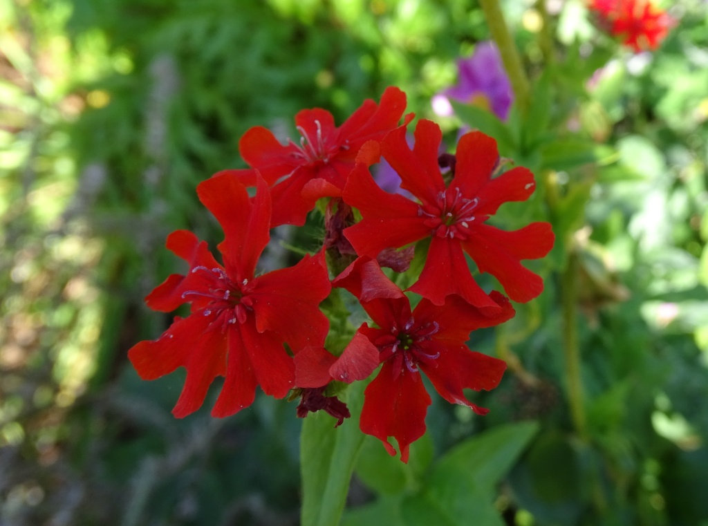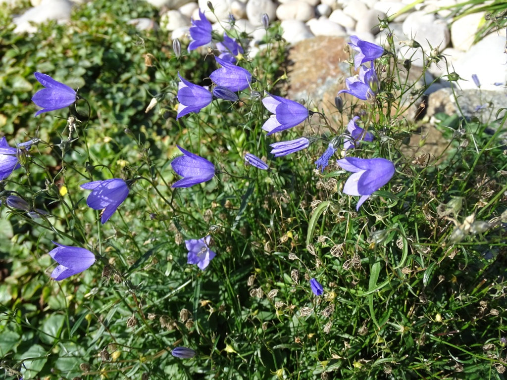 A few pictures taken recently. I love looking at all the beautiful pictures here - full of inspiration and ideas to emulate.A shortage of bees this year, but they often visit this DahliaPetunia Night SkyHarebell - sown from seed - so dainty.Another sown from seed Maltese CrossAmid this jungle is a Castor Oil plant with red seed heads and tiny yellow flowers