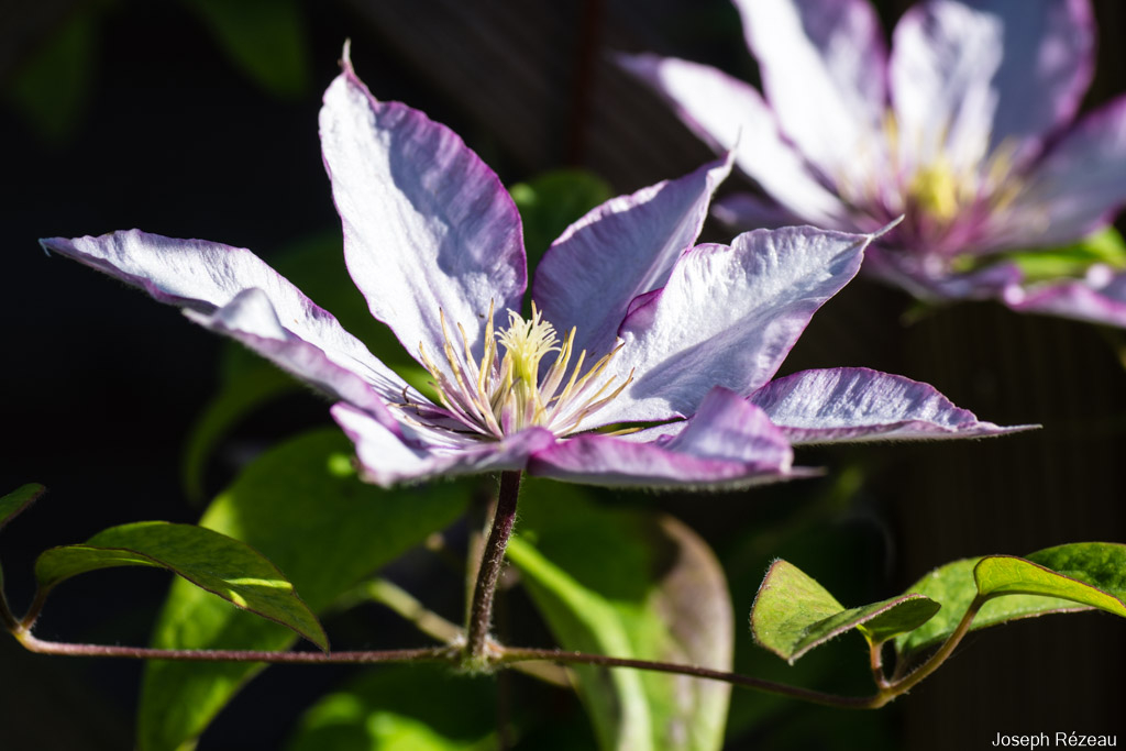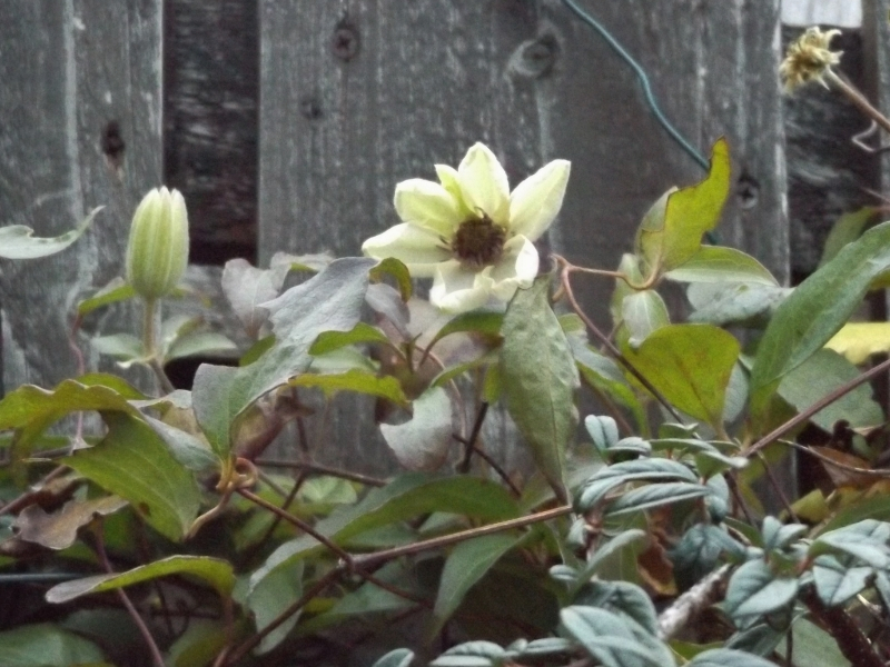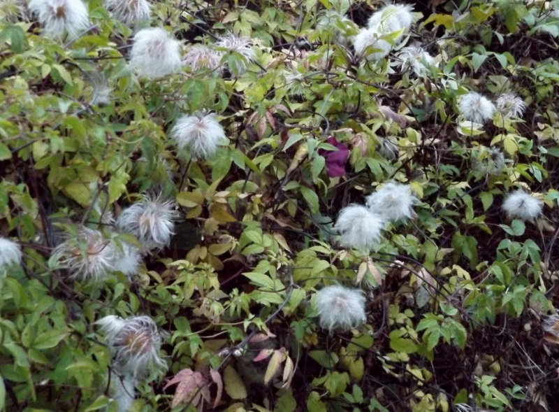 From yesterday - a little flower on the Clematis Miss Bateman and some fluffy seedheads on the Alpina Constance