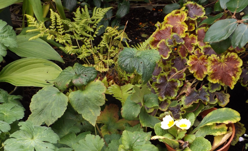 Lovely autumn pix everyone. Nice to see that mix of foliage turning, and flowers still blooming I like that white aster @Papi Jo. Is that readily available? I really must take some photos of plants. Seems to have been just birds and hedgehog houses recently! I did take this a couple of weeks ago, when I put a bit of the new heuchera [Solar Eclipse] in a spot to see if it would suit. I like the combination of it , the fern and the primula together, so will plant those soon .