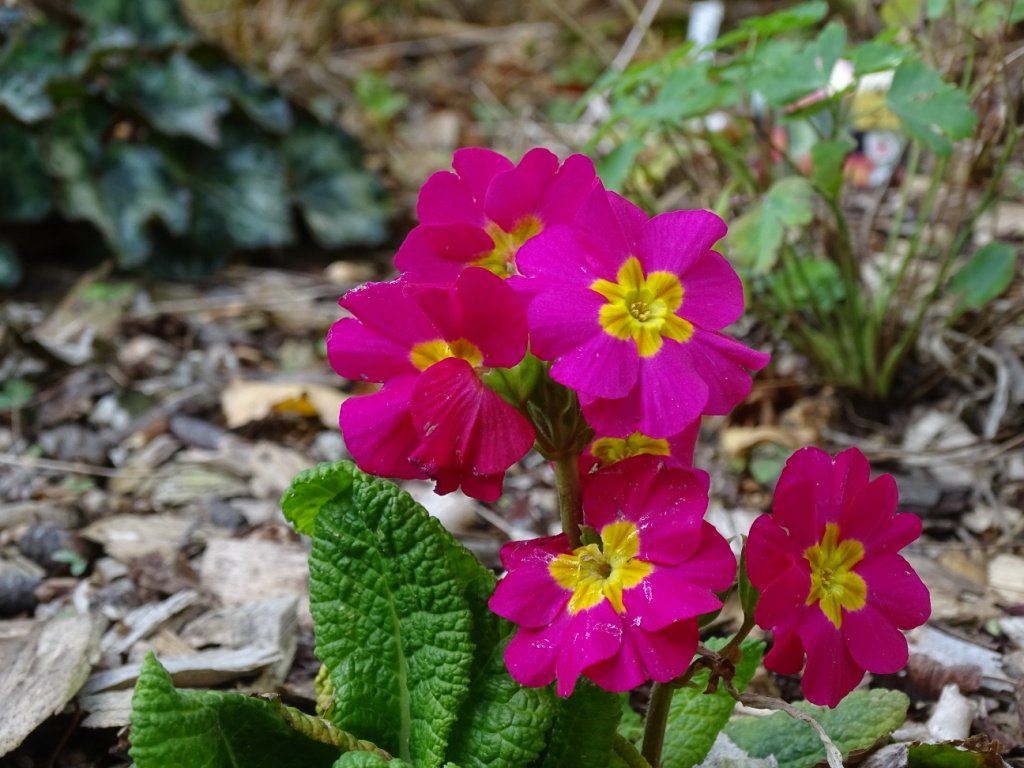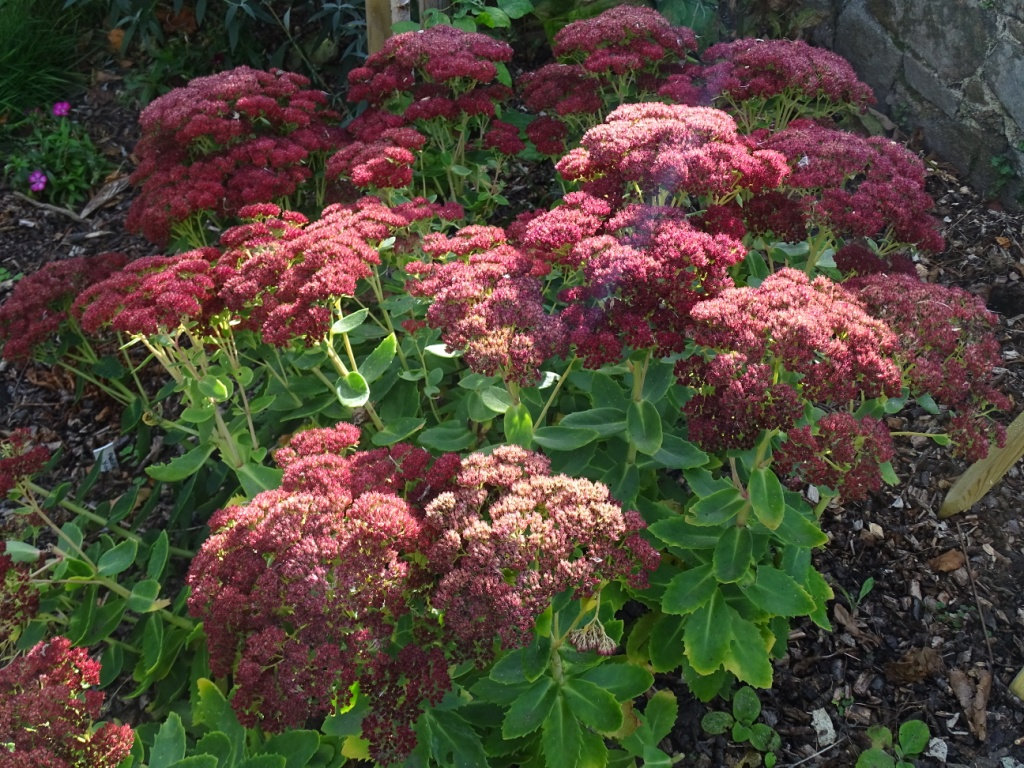 Pelargoniums in an old galvanised tin bath - this is their second year of flowering and are just as vibrant as they were last year.Dahlia Ball Fusion - third year of floweringSedum, ice .....?VerbenaPolyanthus, the colour is so vividGolden Oldie Rose, the force 8 wind tonight will probably ruin this late flowerCosmos