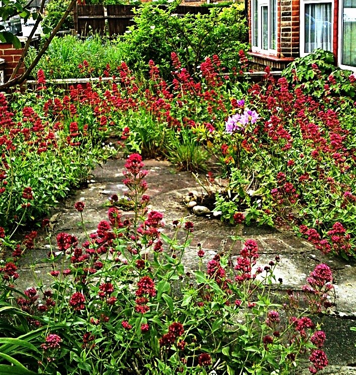 Here's a view of my front garden in summer - courtesy of nature; It's red valerian (a garden escape).