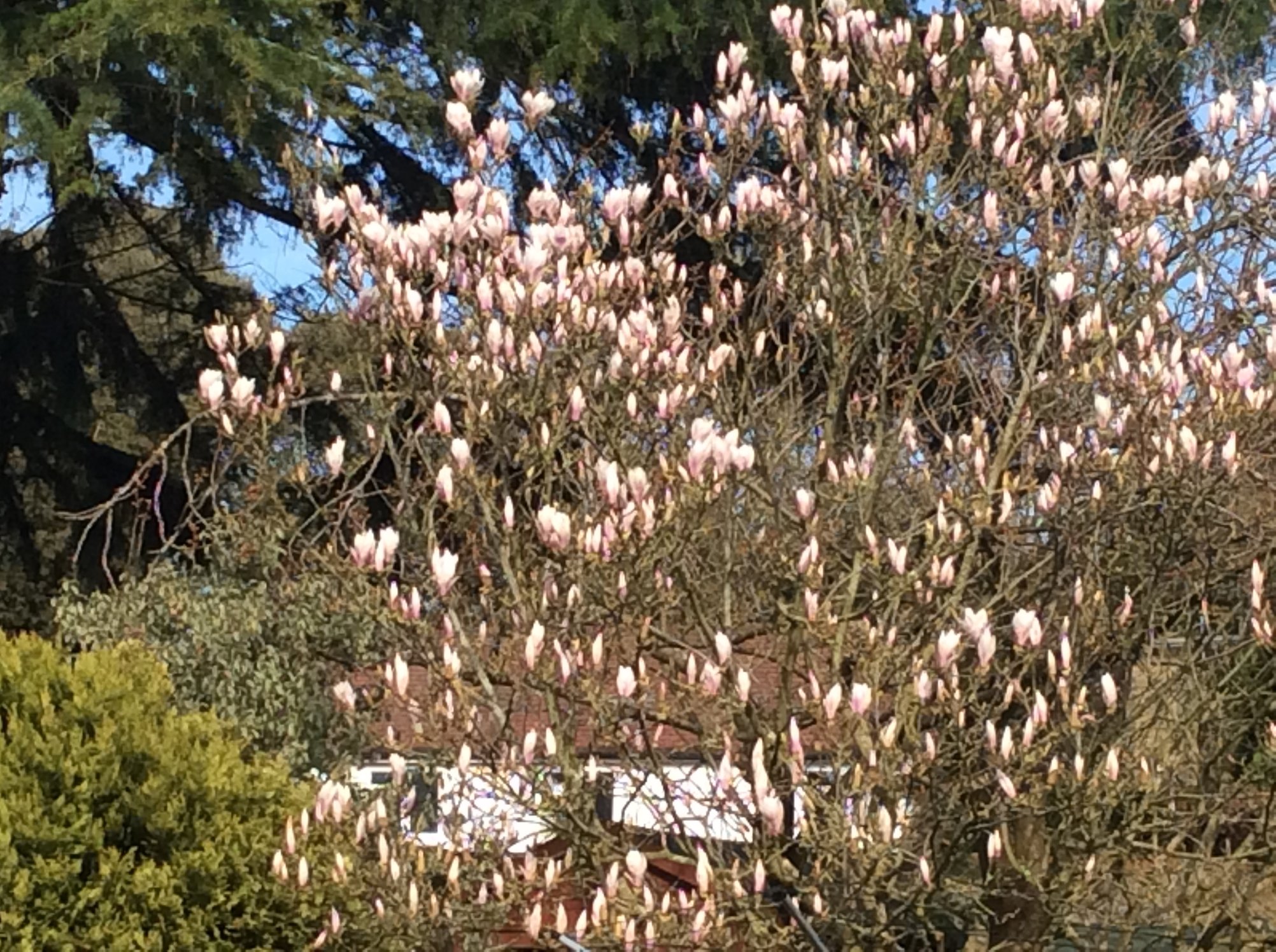 My magnolia and cherry this time last year. the magnolia has already flowered and dropped most of its flowers And the cherry blossom was out.