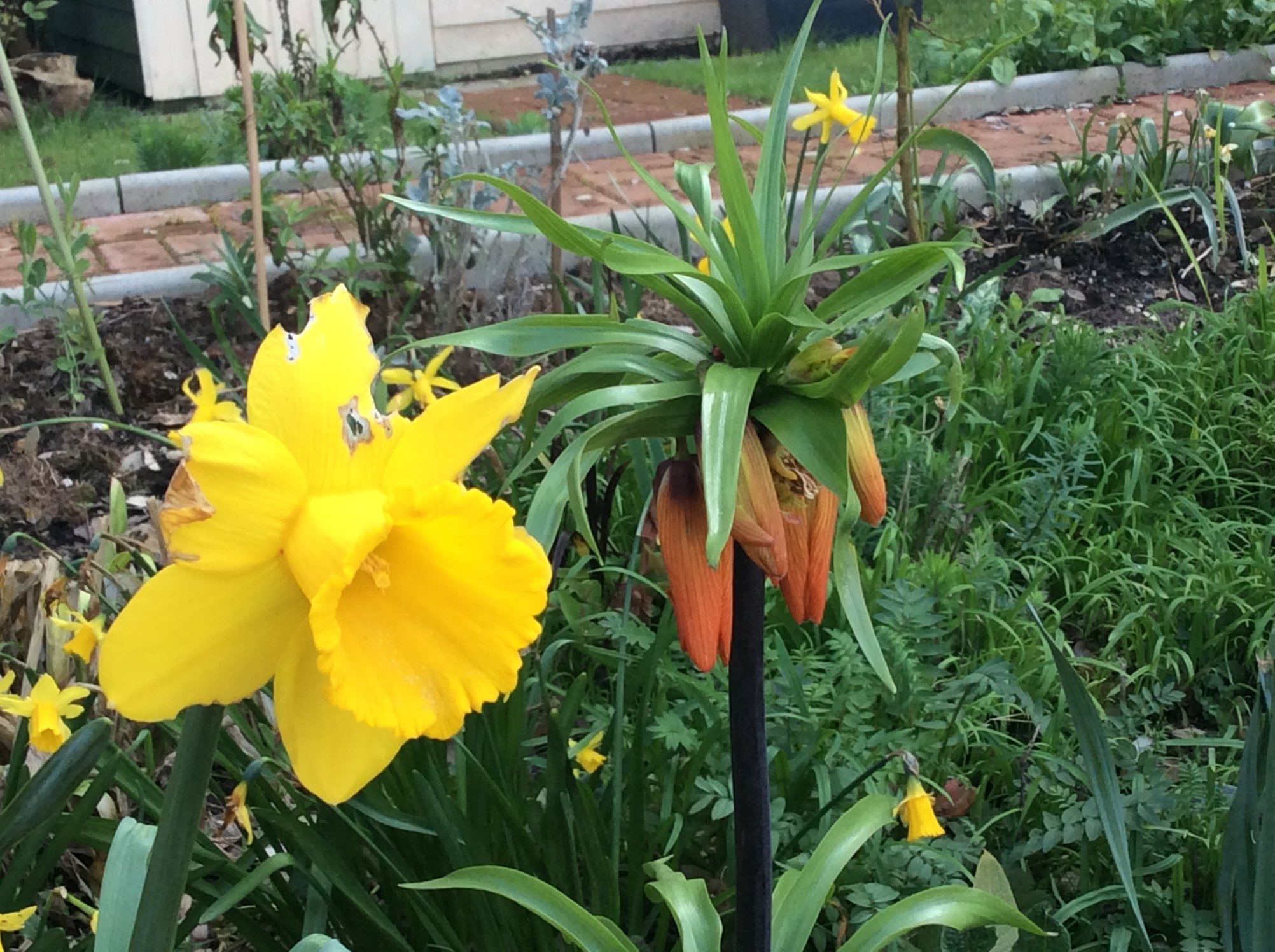a crown imperial I can’t remrber planting has popped up in a bed of dafs