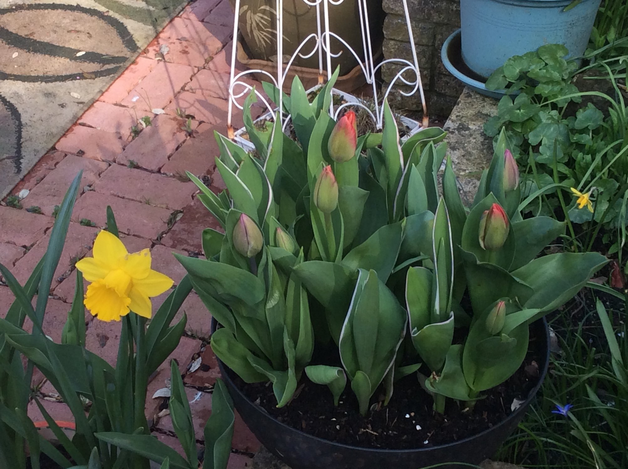 Lovely, I love the orange imperials. Some of mine are at same stage as yours, the ones in the front garden, all of 50ft aways are only about 6 inches above ground. Havent got a tulip anywhere near flowering yet though