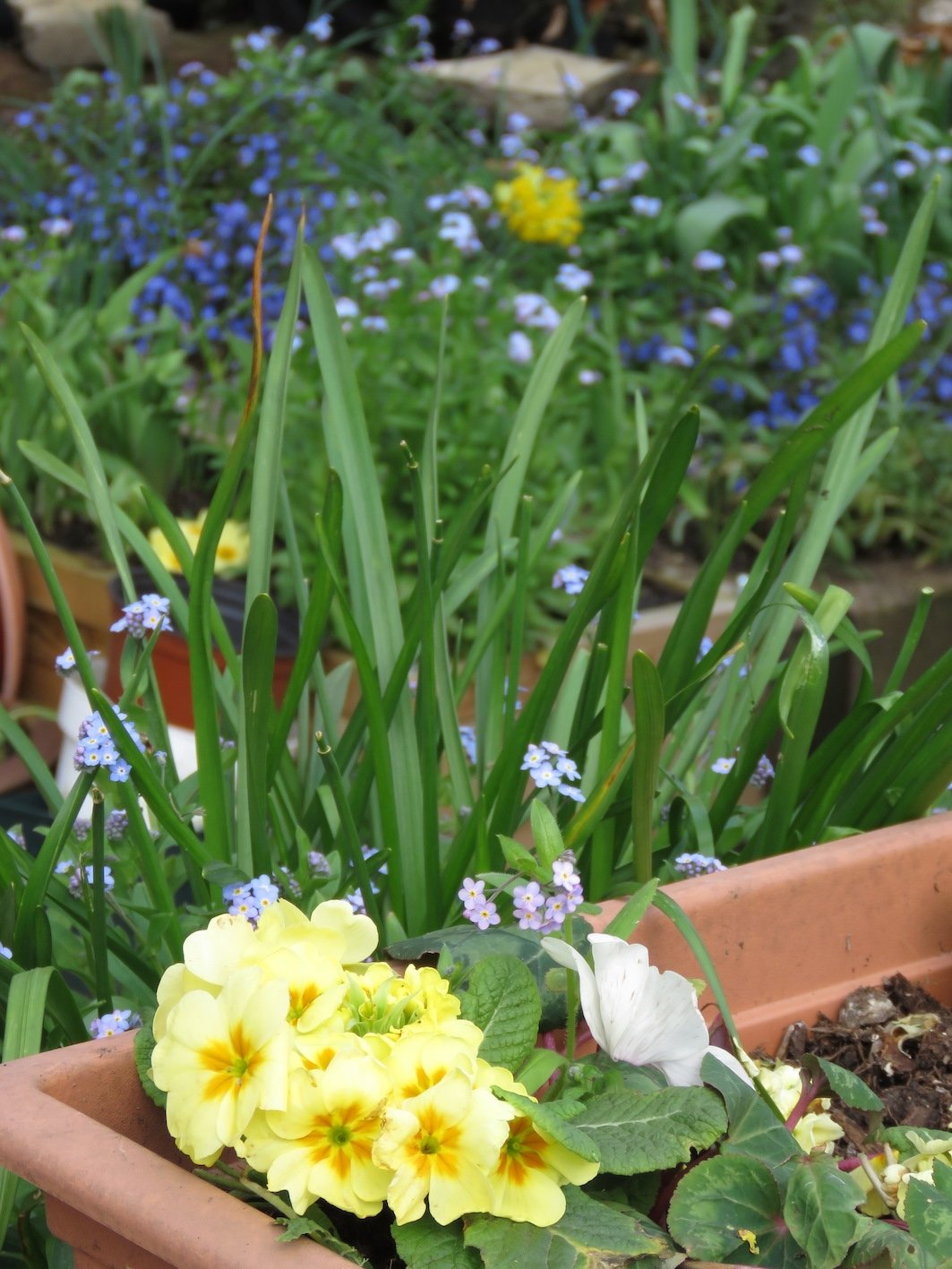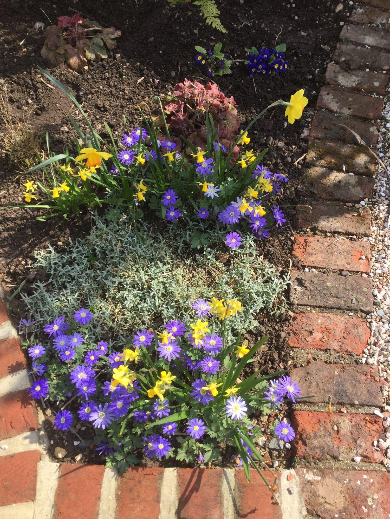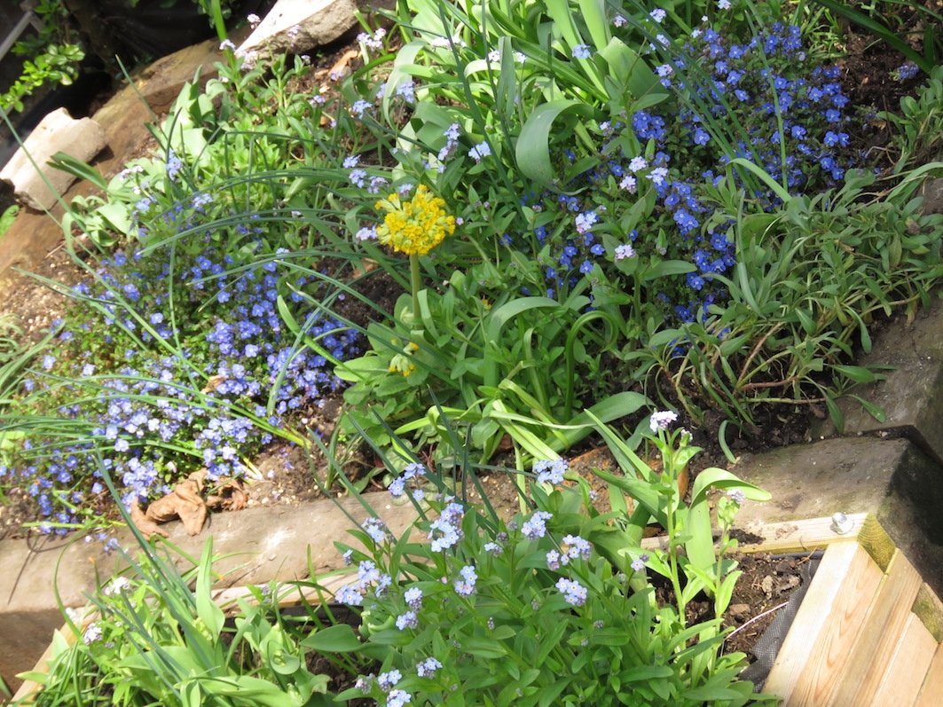 Pictures from today - all around 500KB. I hope they open ok everyone. .............................. New front raised bed. Cowslip, creeping veronica, fmns, primroses. 👇🏼