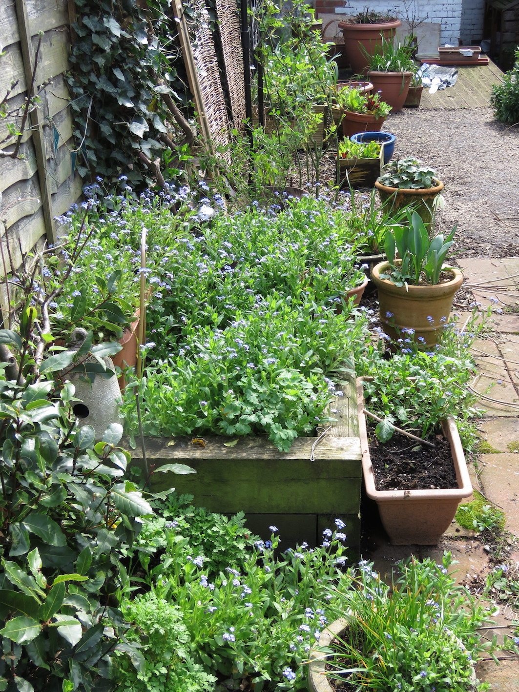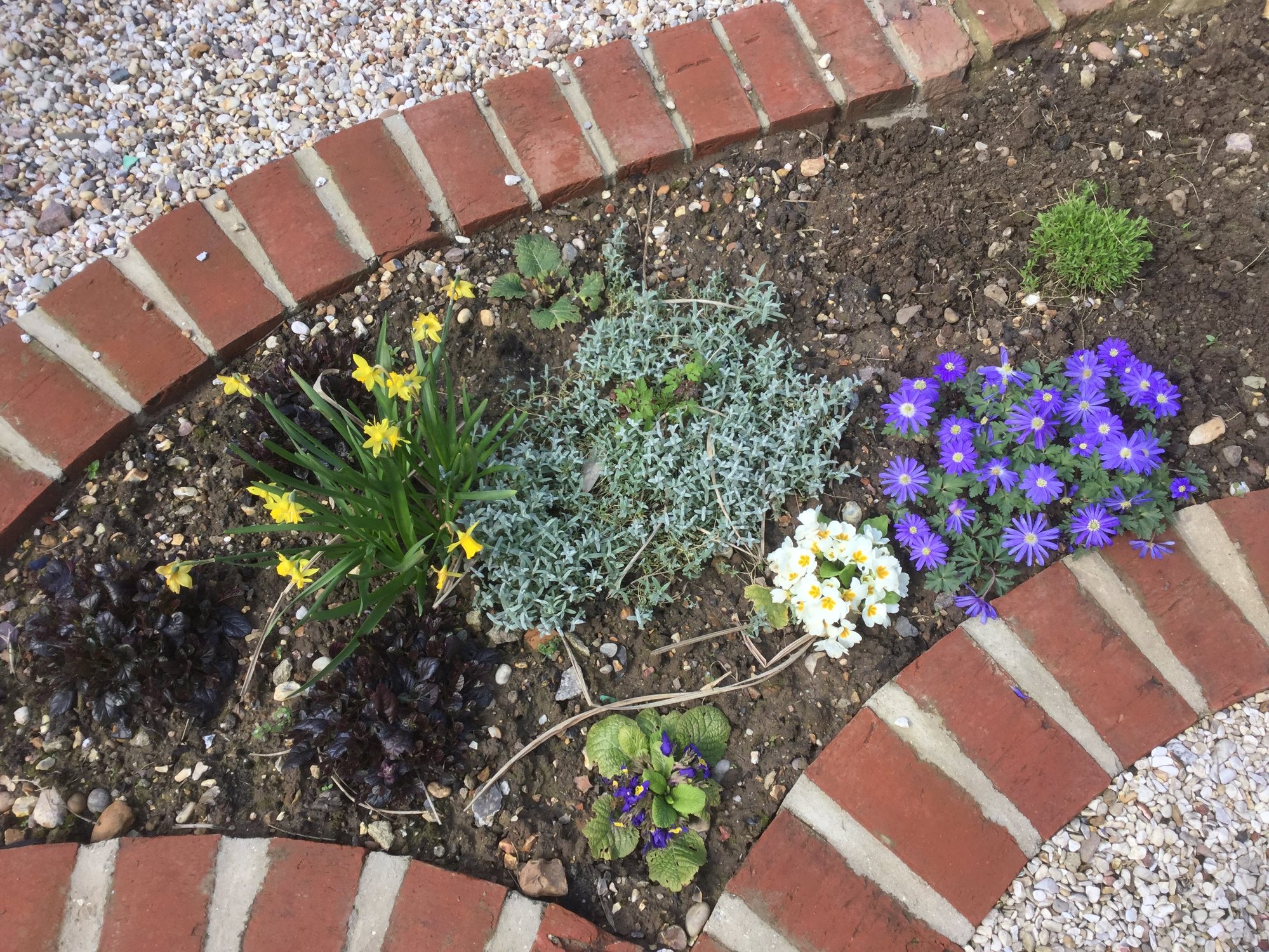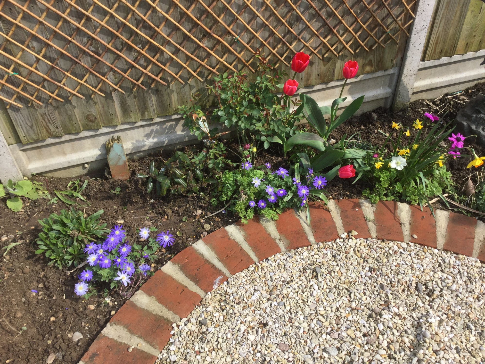 Pictures from today - all around 500KB. I hope they open ok everyone. .............................. New front raised bed. Cowslip, creeping veronica, fmns, primroses. 👇🏼