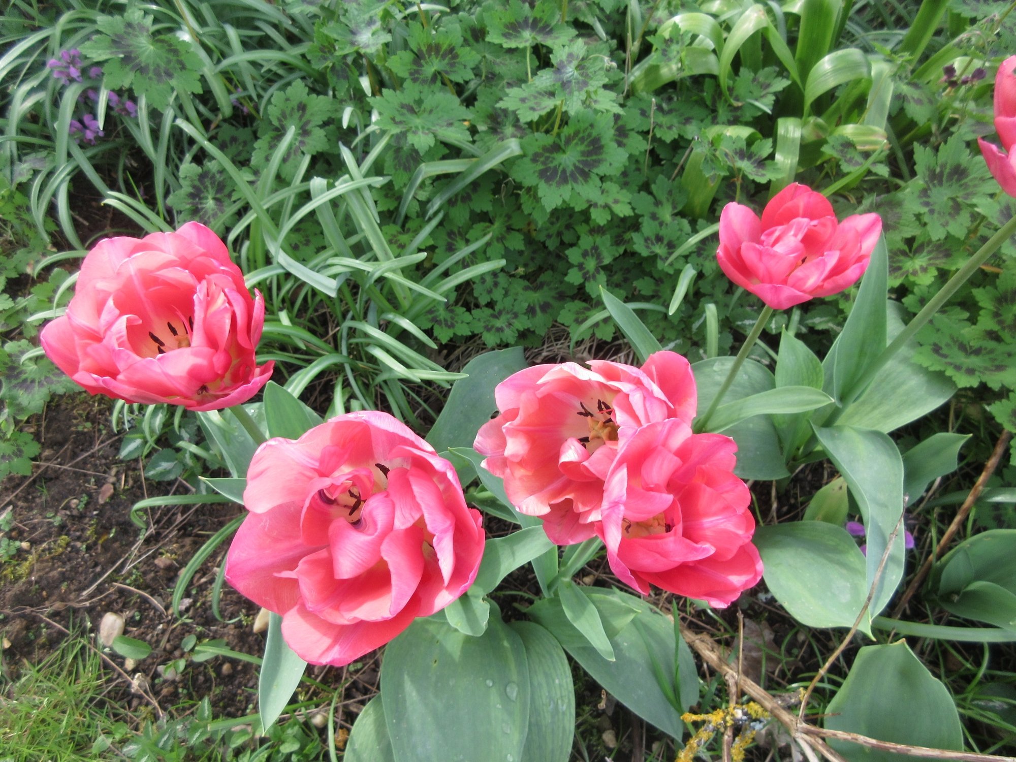 A pity the crab apple isn’t quite in bloom. The daffodil bed will soon be mass planted with geranium Rozanne with a single central geranium Anne Folkard growing over a peony support. In the small bed by the shed is geranium Patricia.