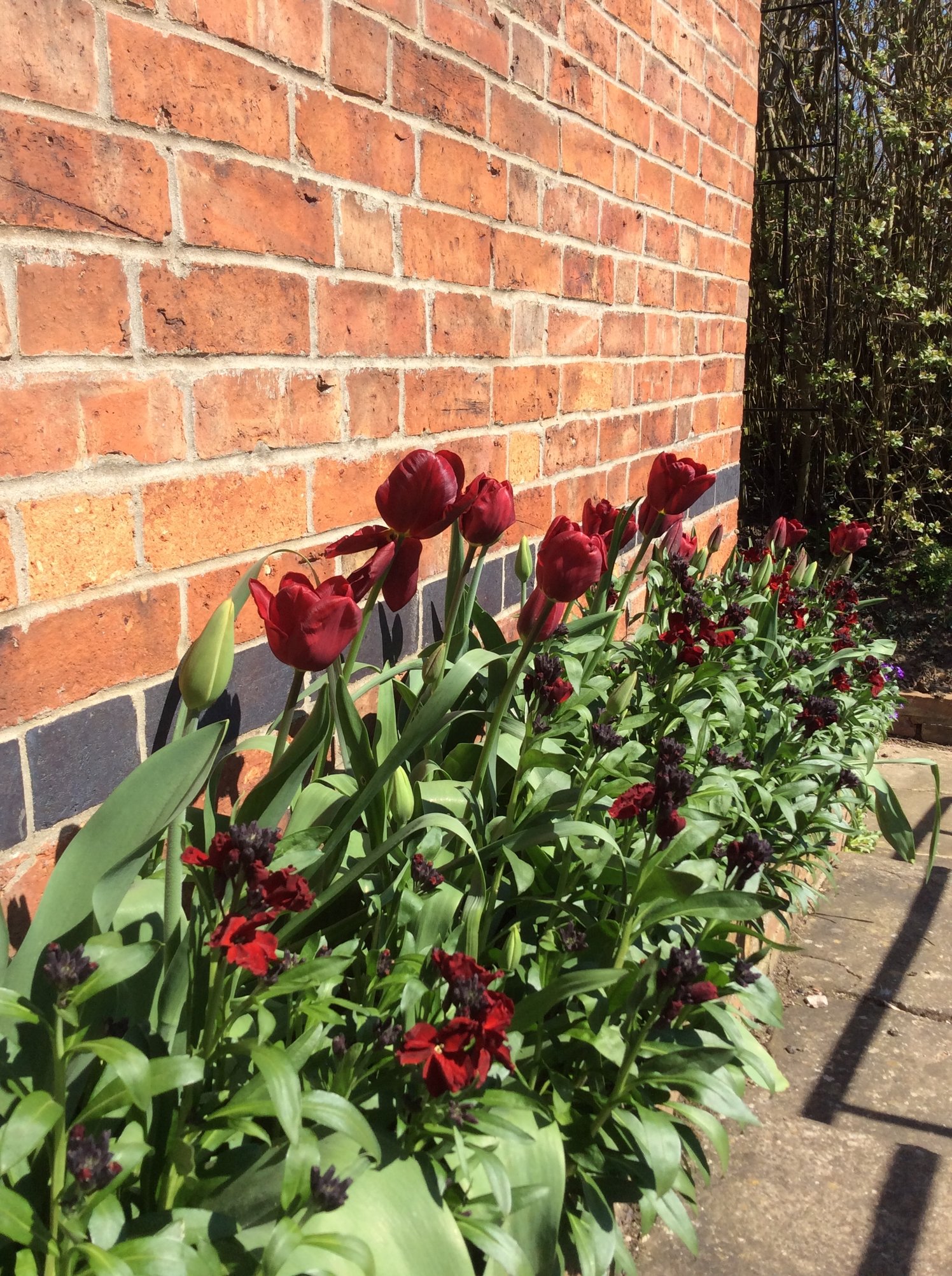 Wallflowers and tulips on the sunny front of the house are probably two weeks I’d advance of those in the back garden
