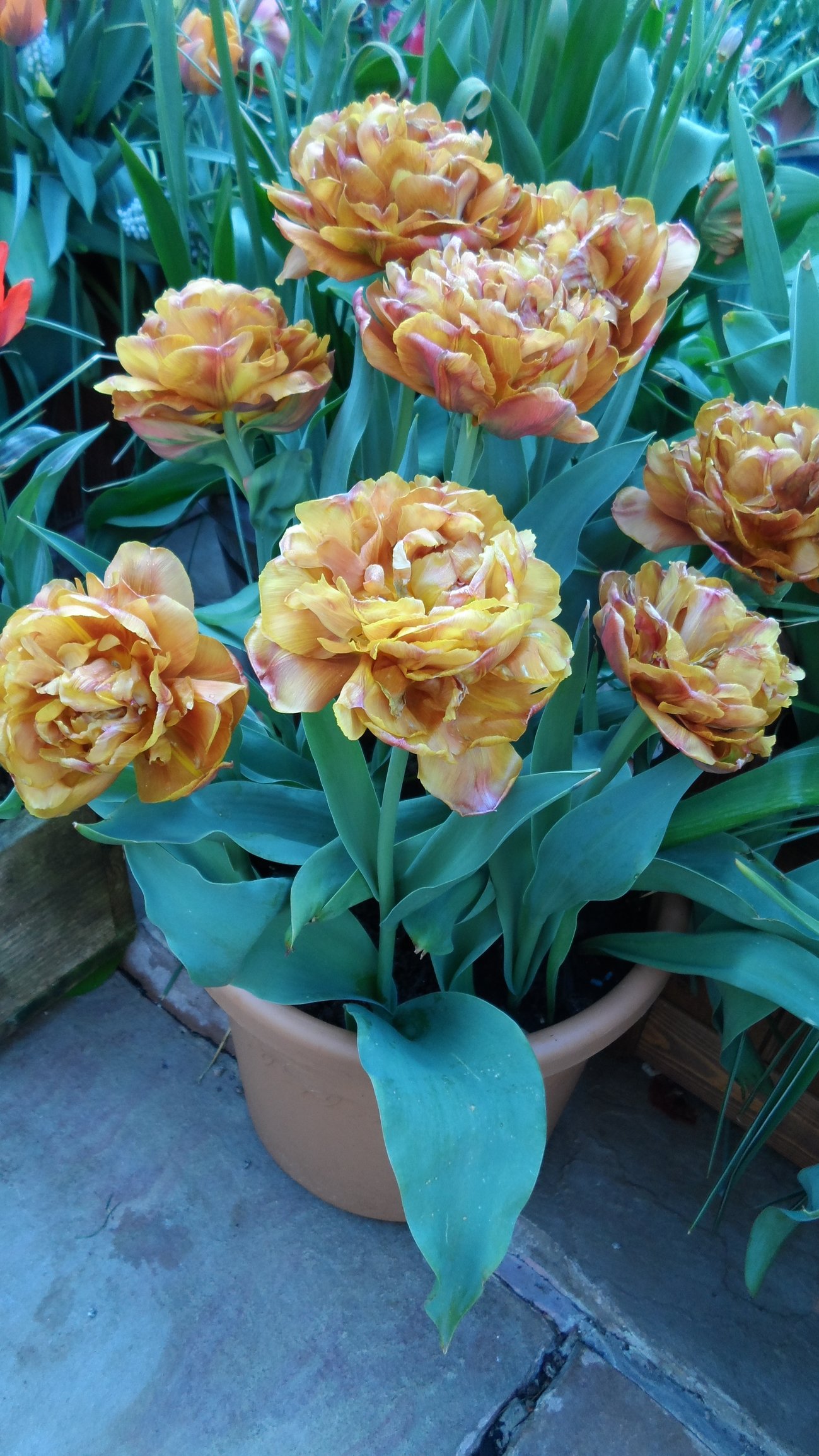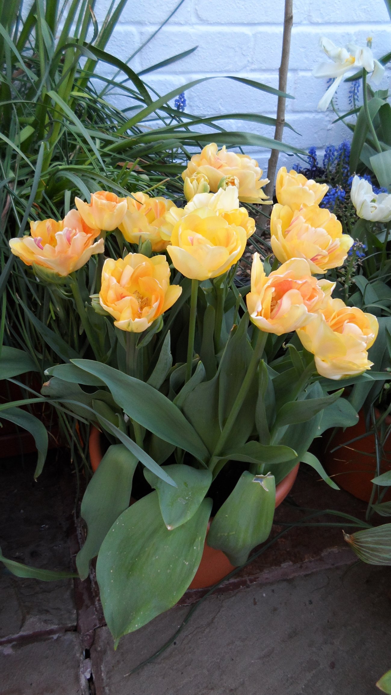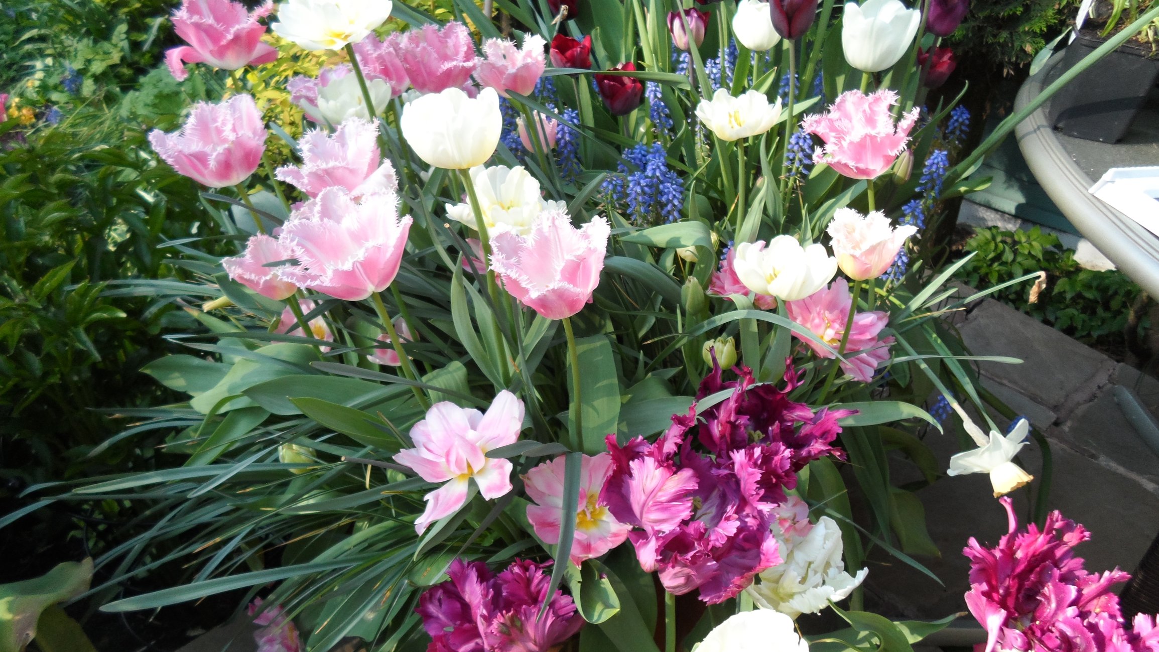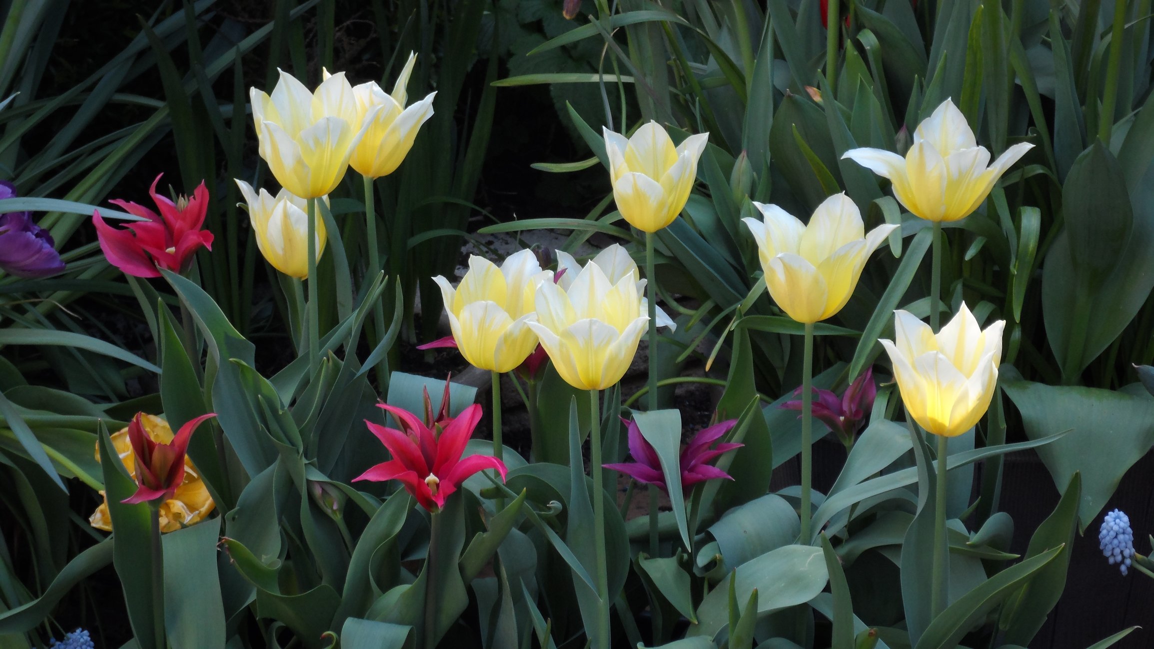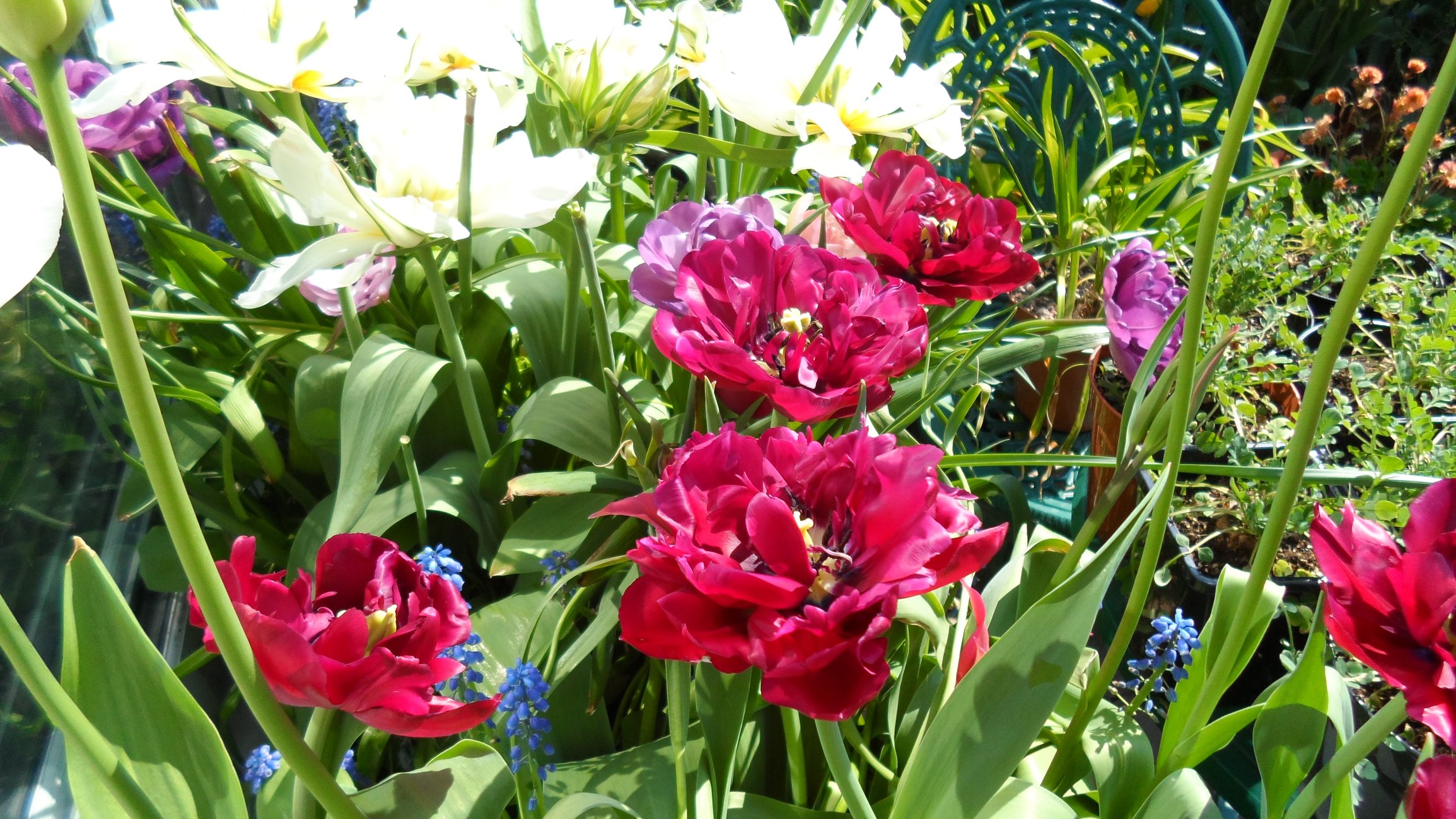 Tulips out in force now hot weather has opened them all up as the daffs make way.