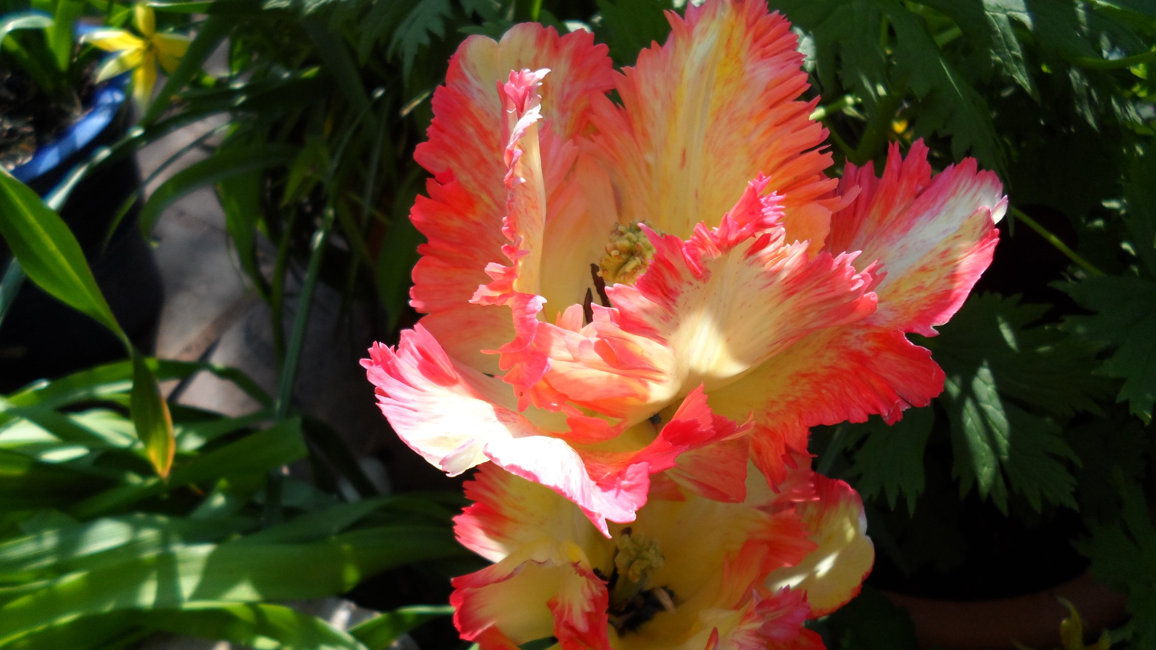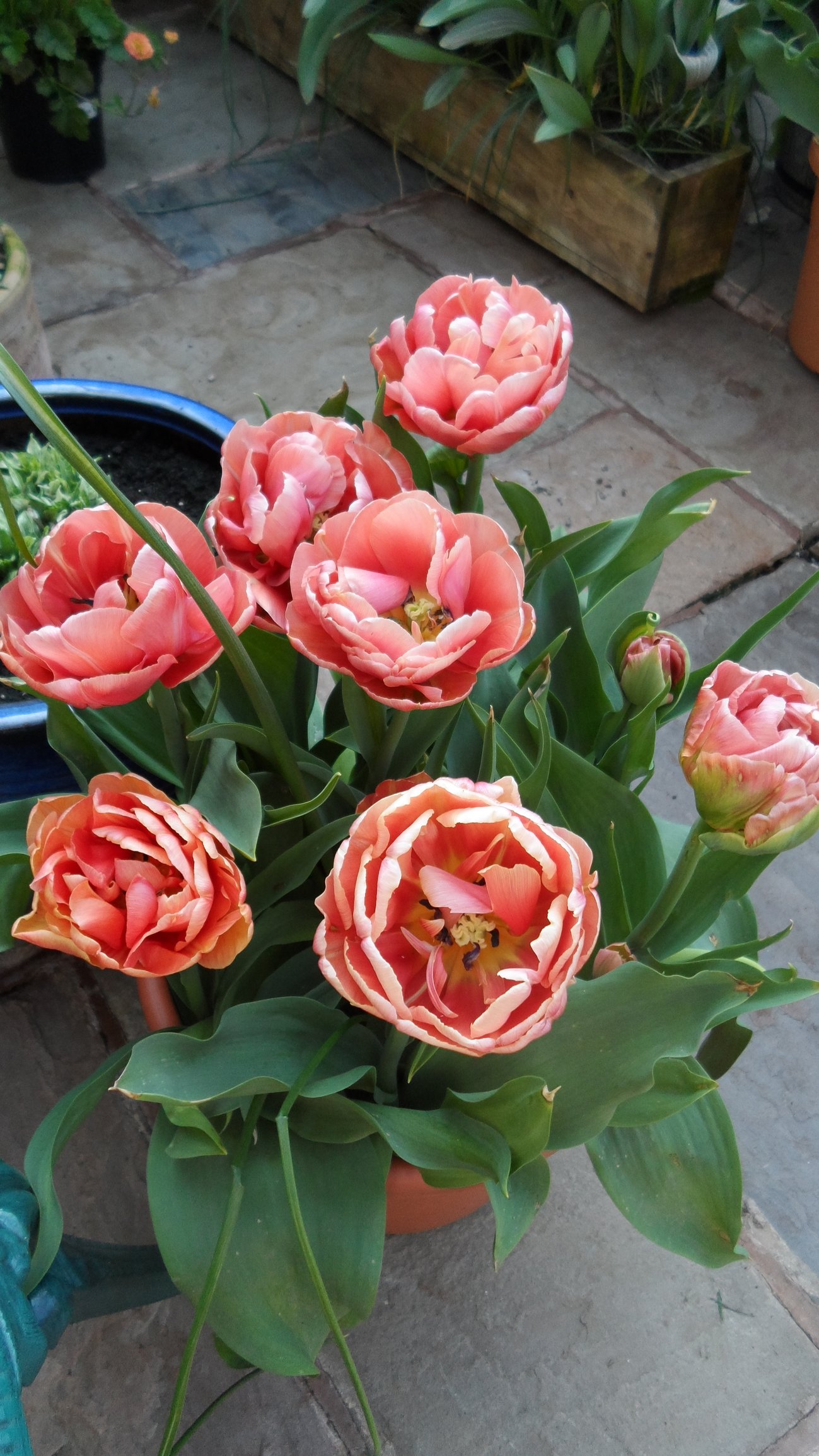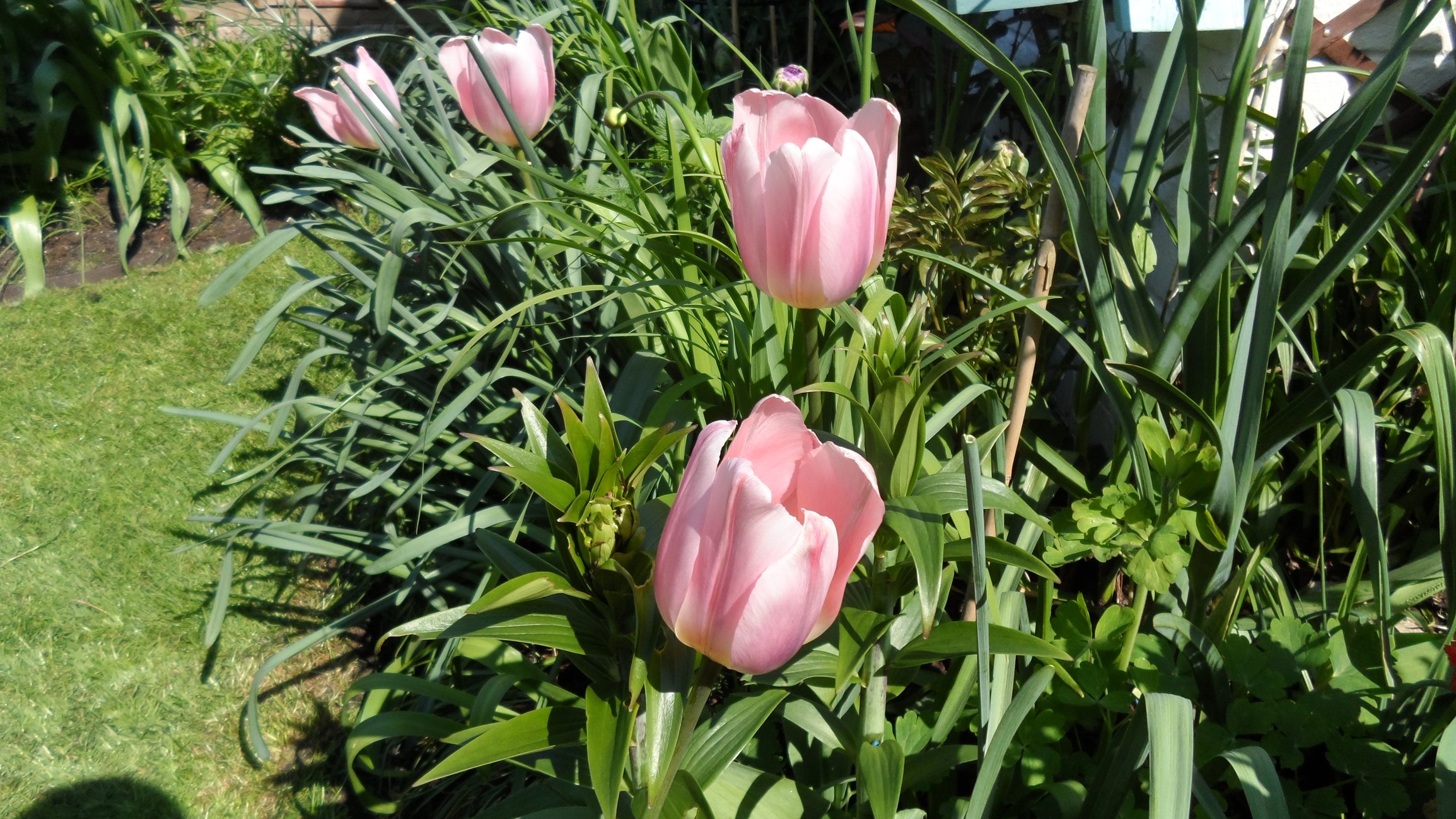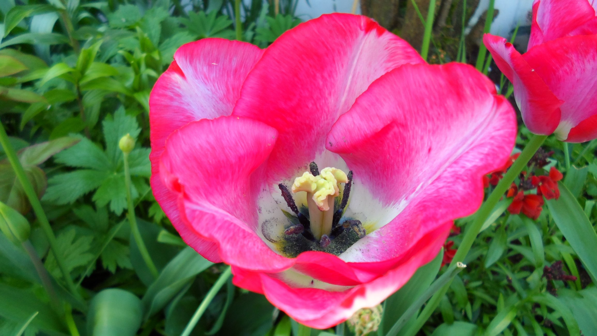 Tulips out in force now hot weather has opened them all up as the daffs make way.