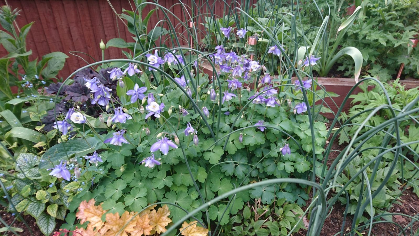 Aquilegia have done well this year, all from one small plant a few years ago. They were suppose to be white, but now they are purple. I can't remember if they were ever white when i first bought them lol