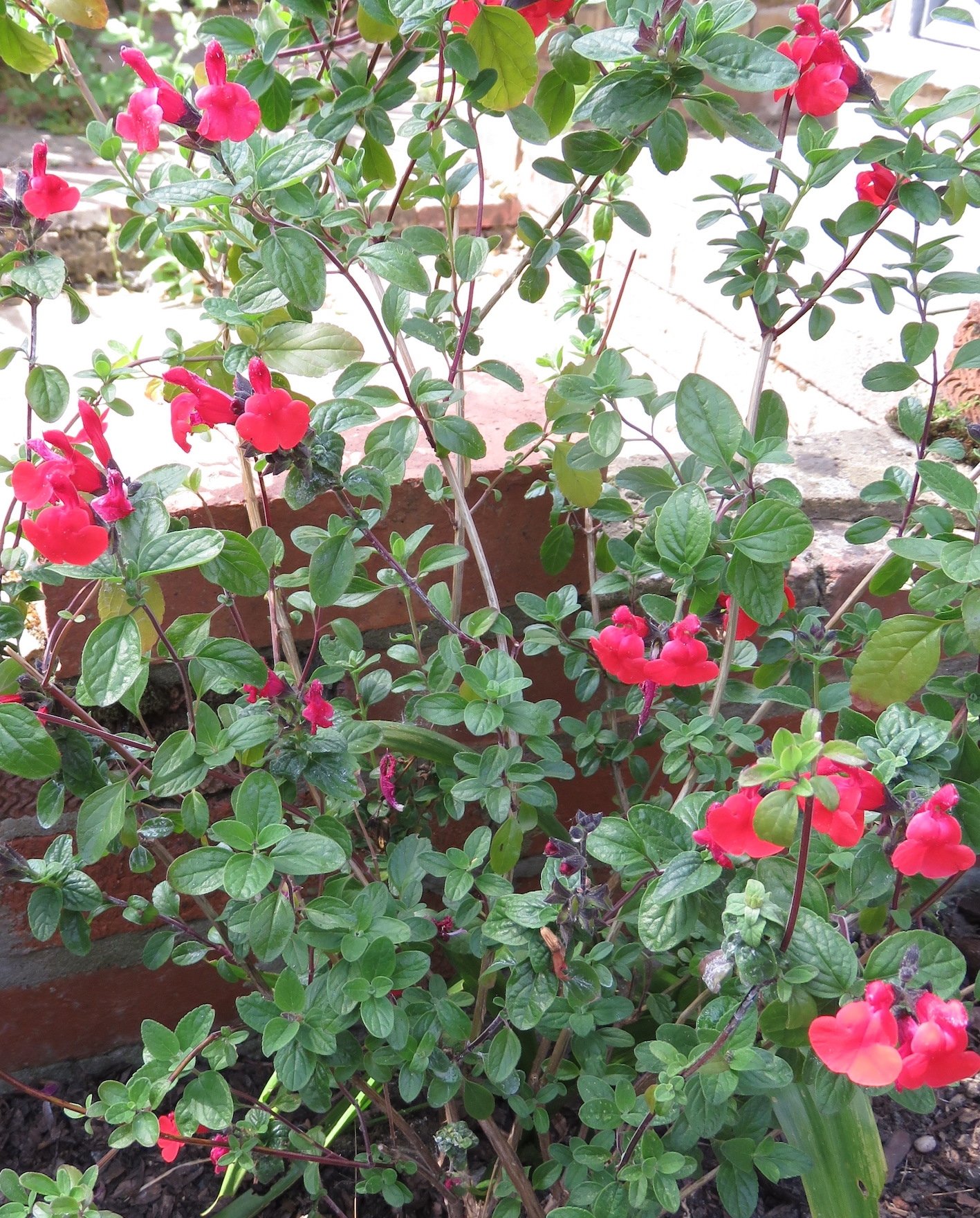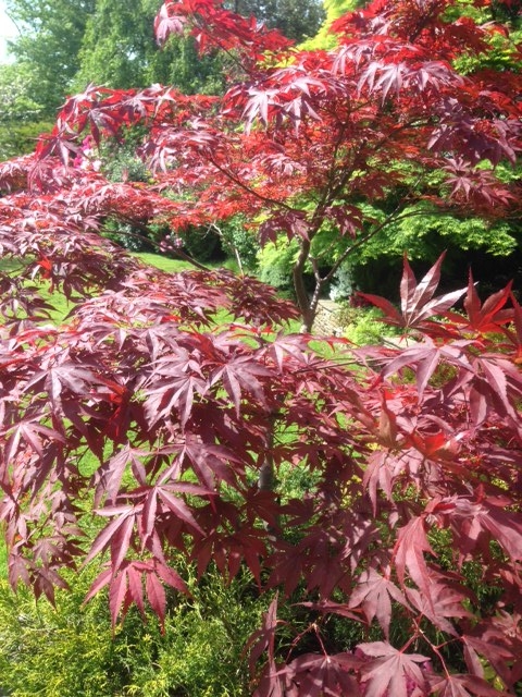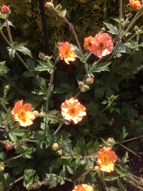 Aquilegias, Acer and Geum (totally tangerine) in this morning’s sunshine.