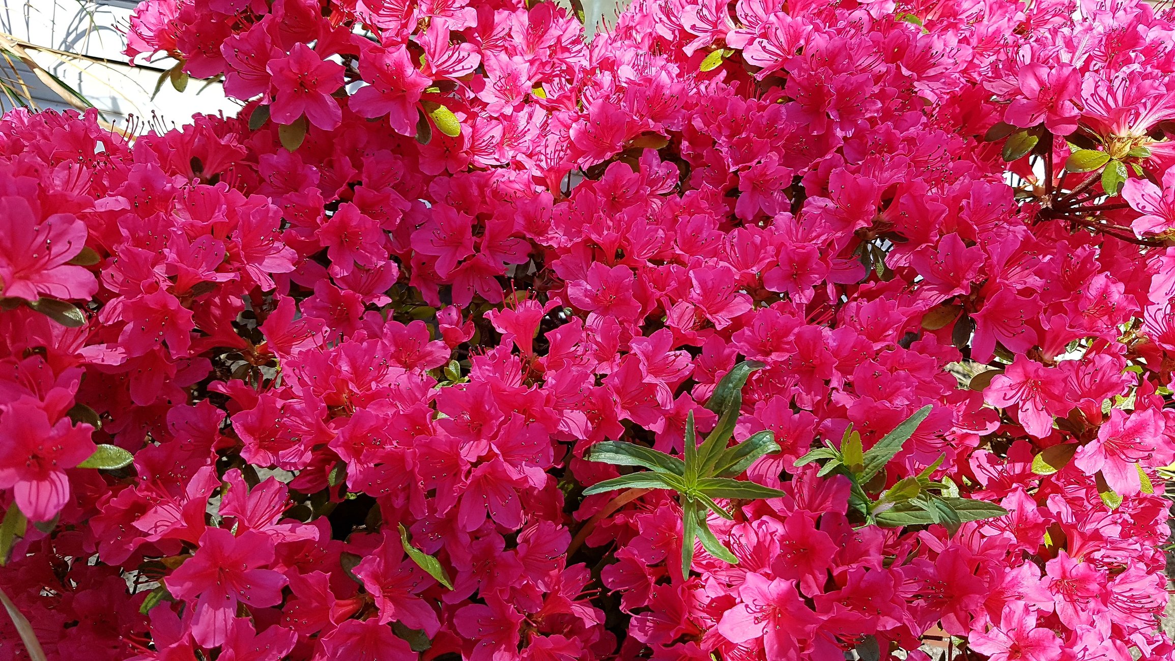 This azalea is pot bound and completely neglected - I thought it was dead at the end of last year. We've just got back from holiday and I was surprised to see this! Excuse the weeds growing amongst it.