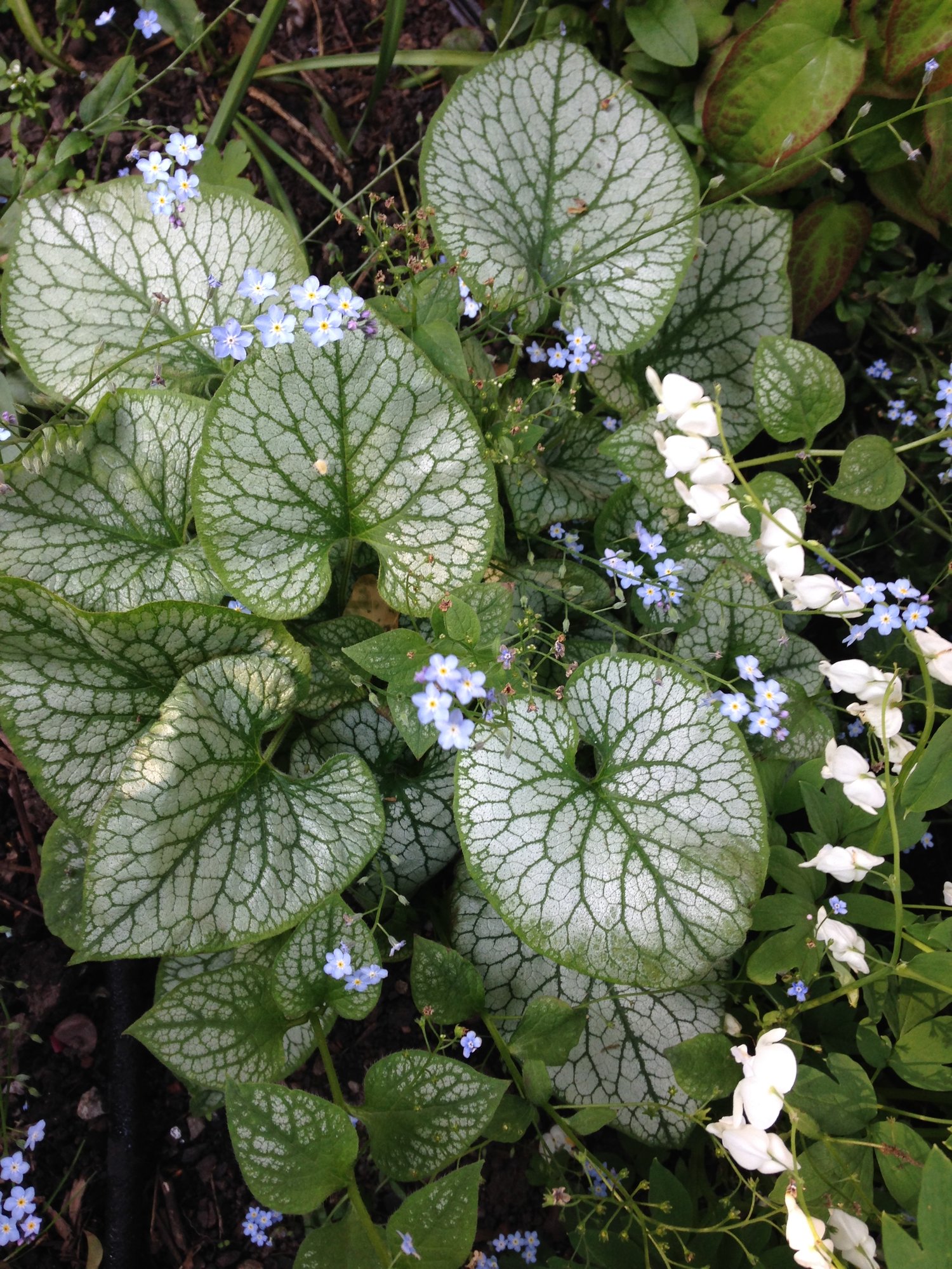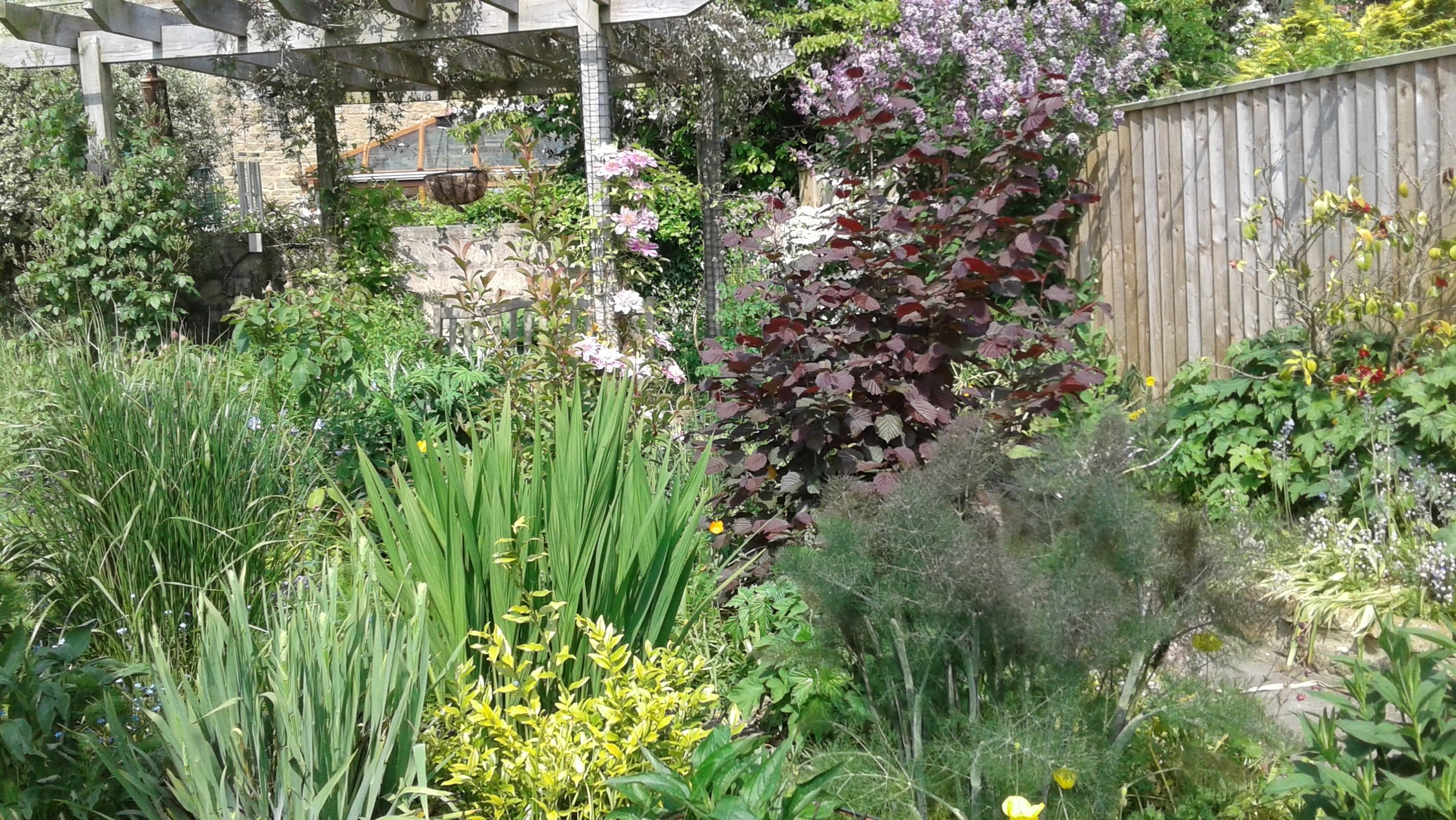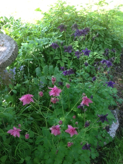 My shady spot under a big Apple tree. Aquilegias, Solomon’s Seal, Astilbes and a Hosta.