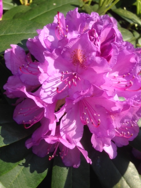 Last of the Rhododendrons to flower, a mauve one (looks a bit pink on photo).