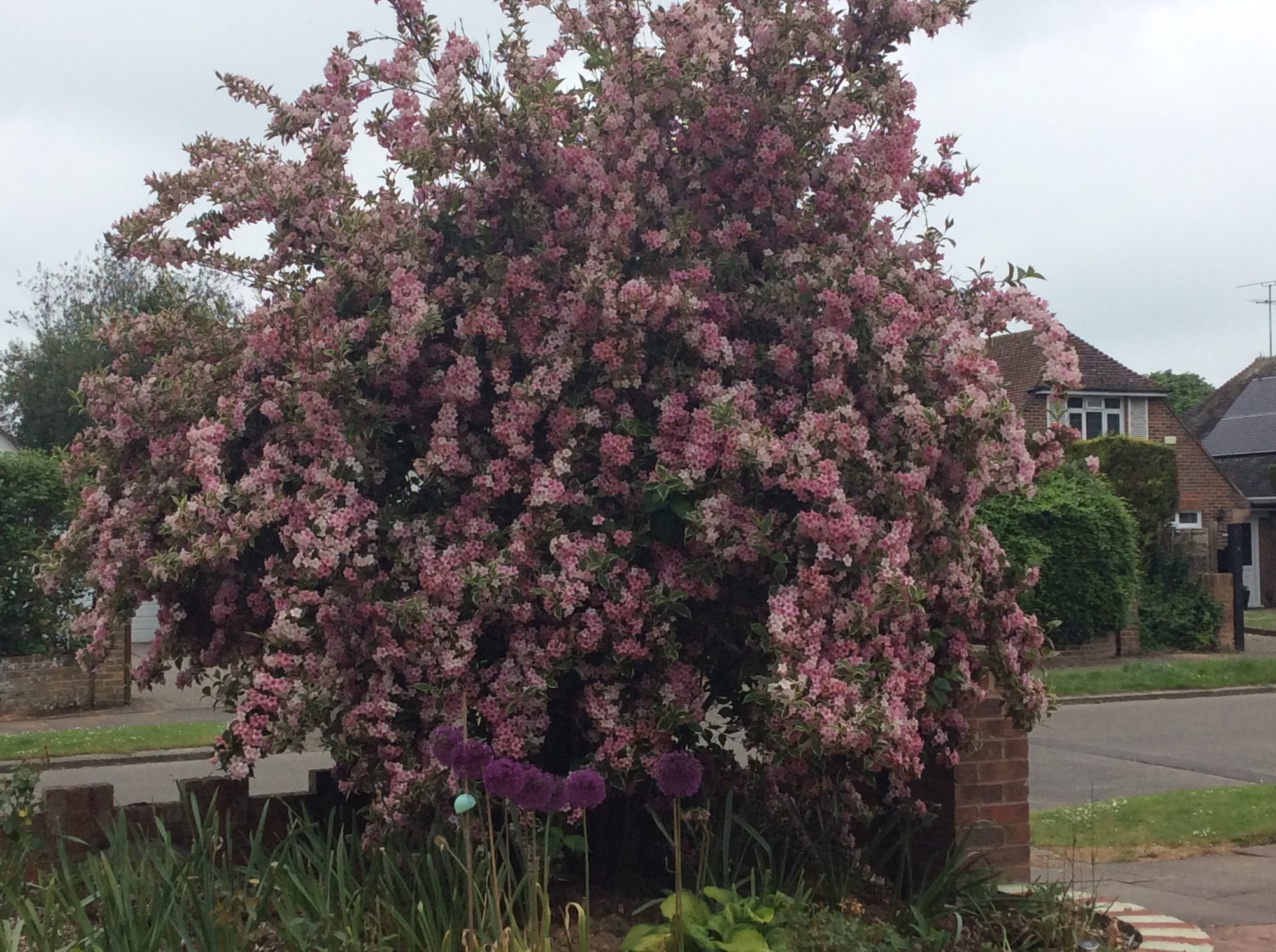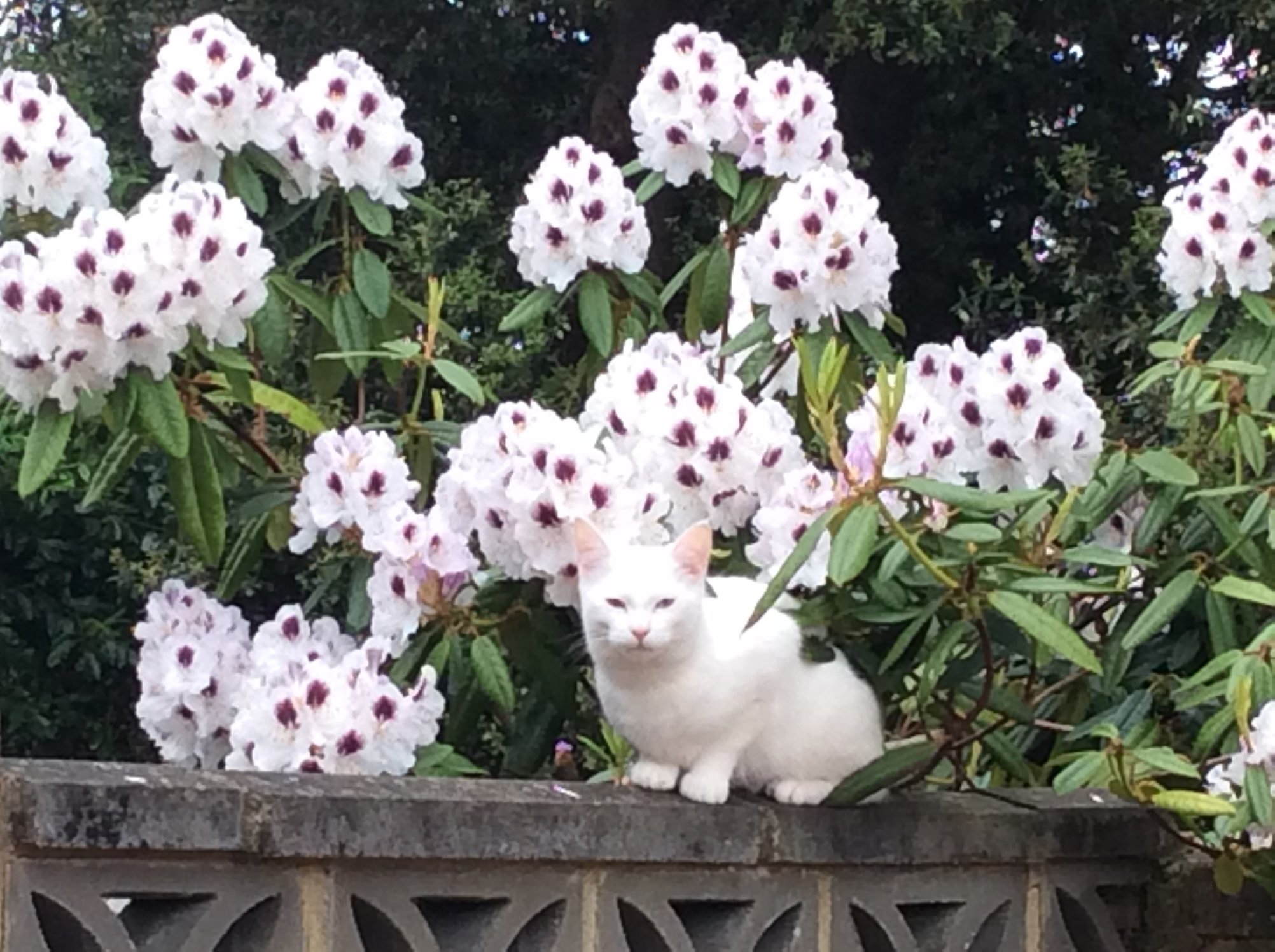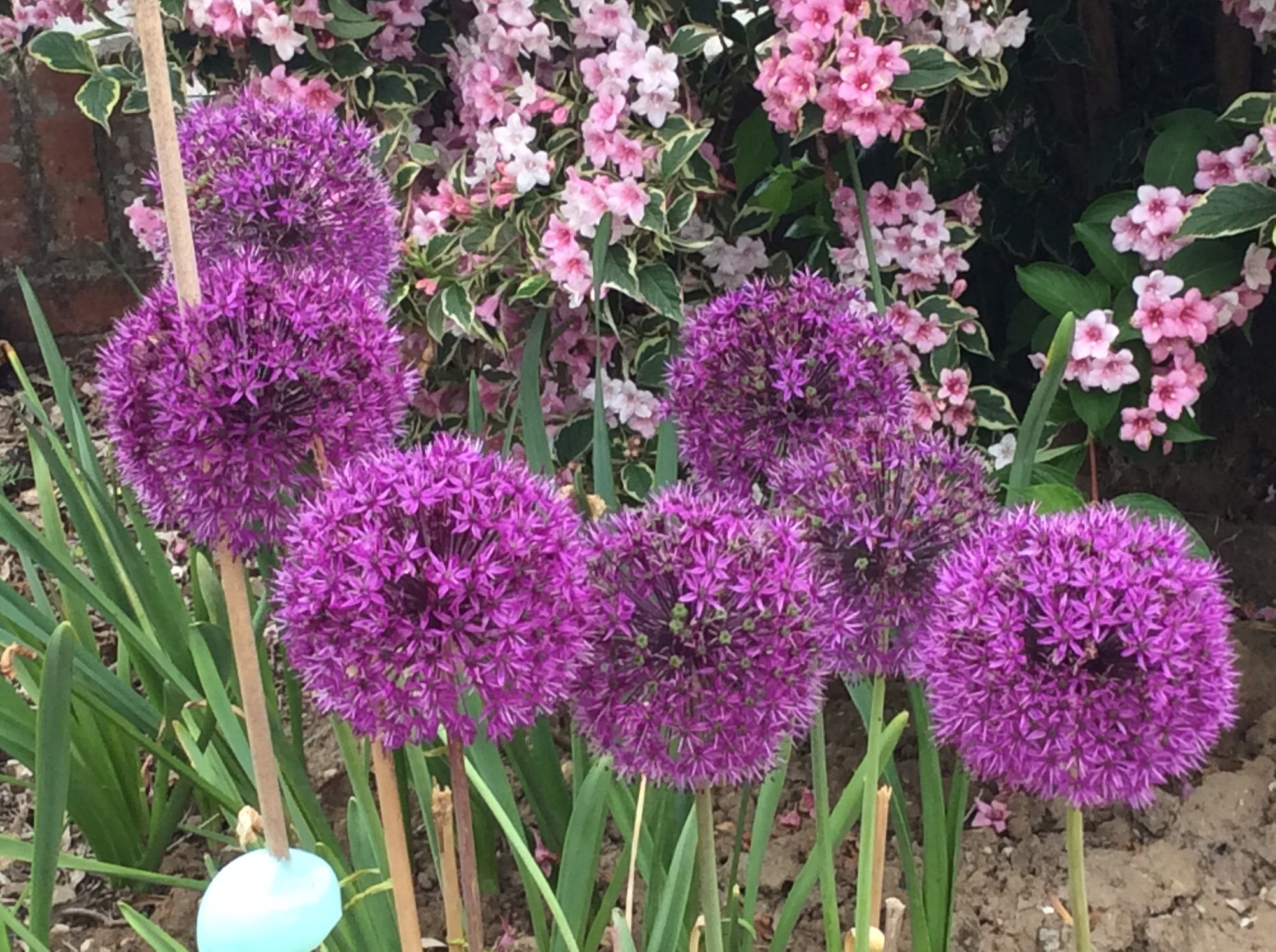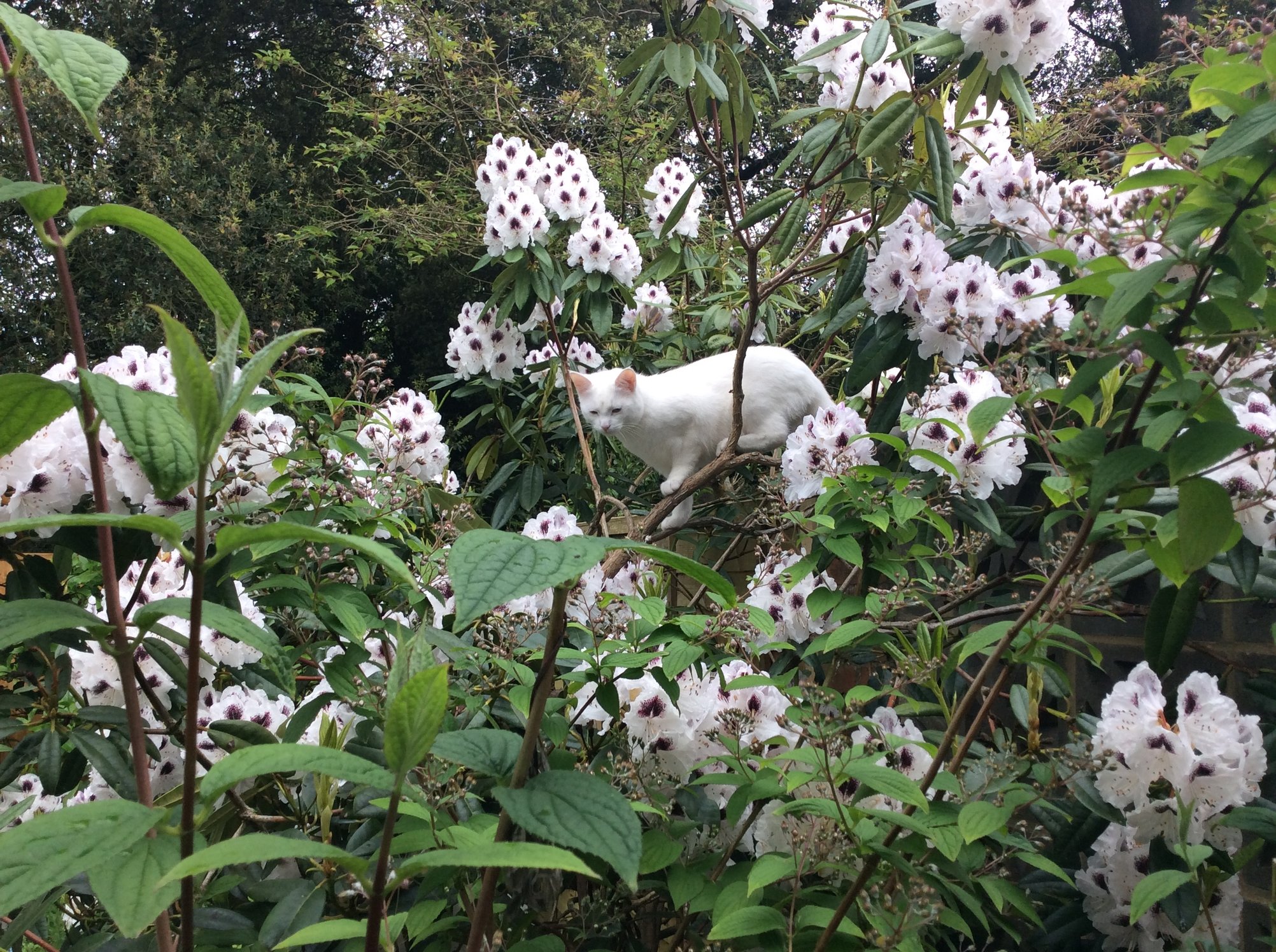 Lovely photos have really cheered me up so I will add a couple of my own Varigted weigelia with allium purple sensation my kitties playing in my Rhododendron Sappho. The way the kittens use it as their own jungle gym I am amazed there is any blooms left on it.