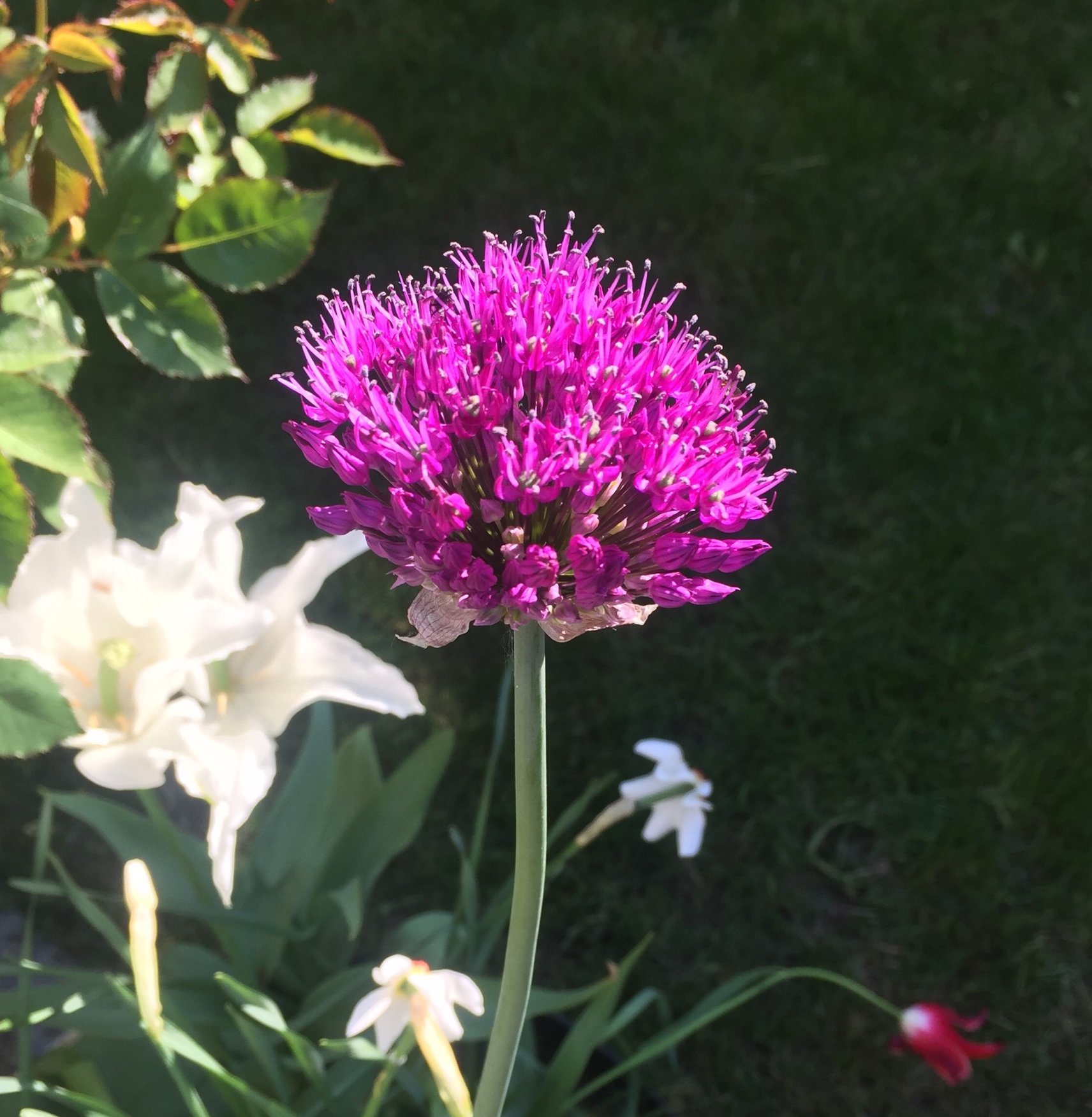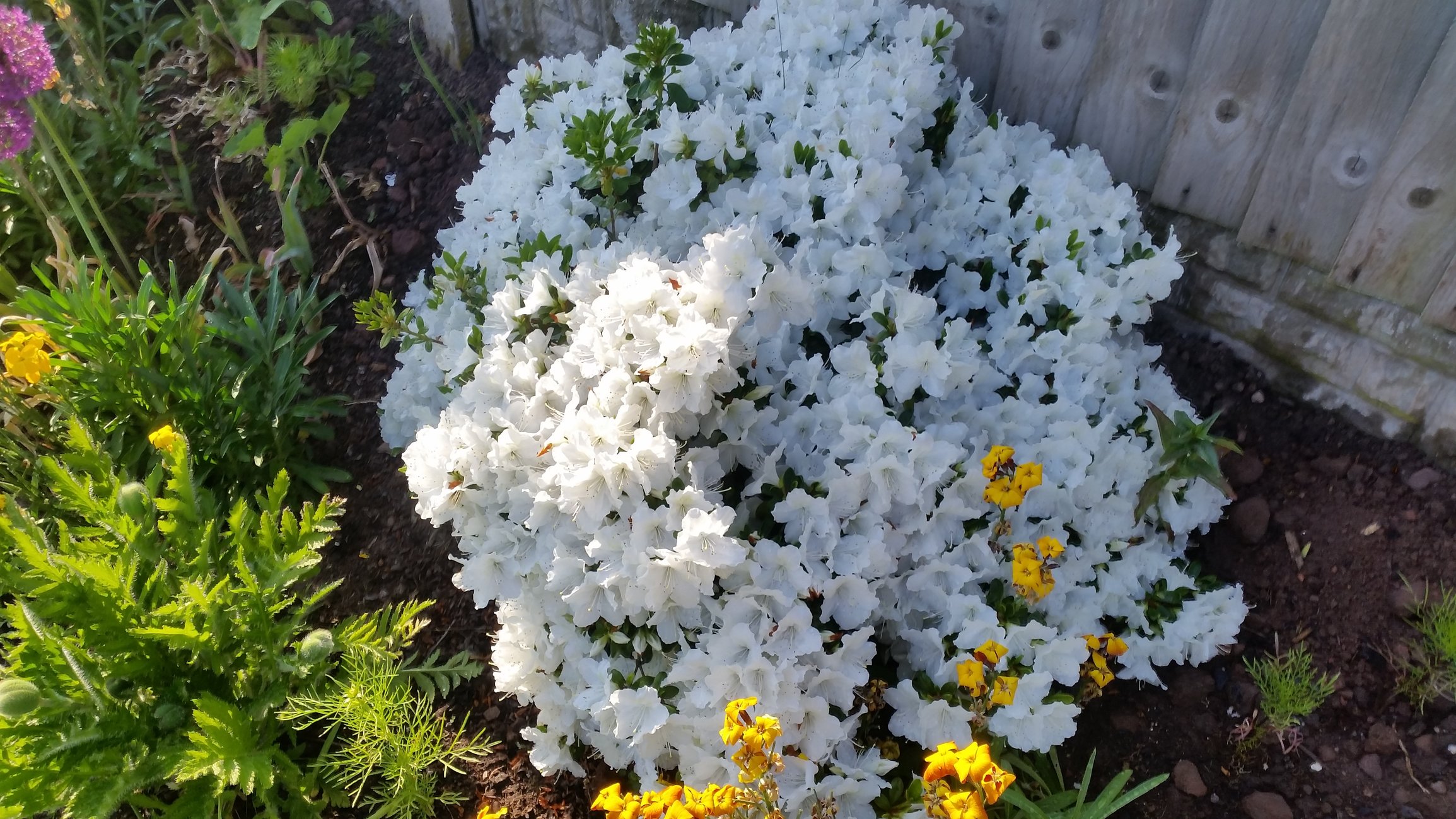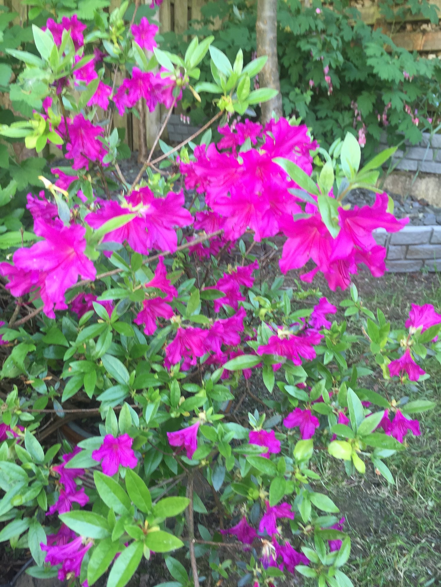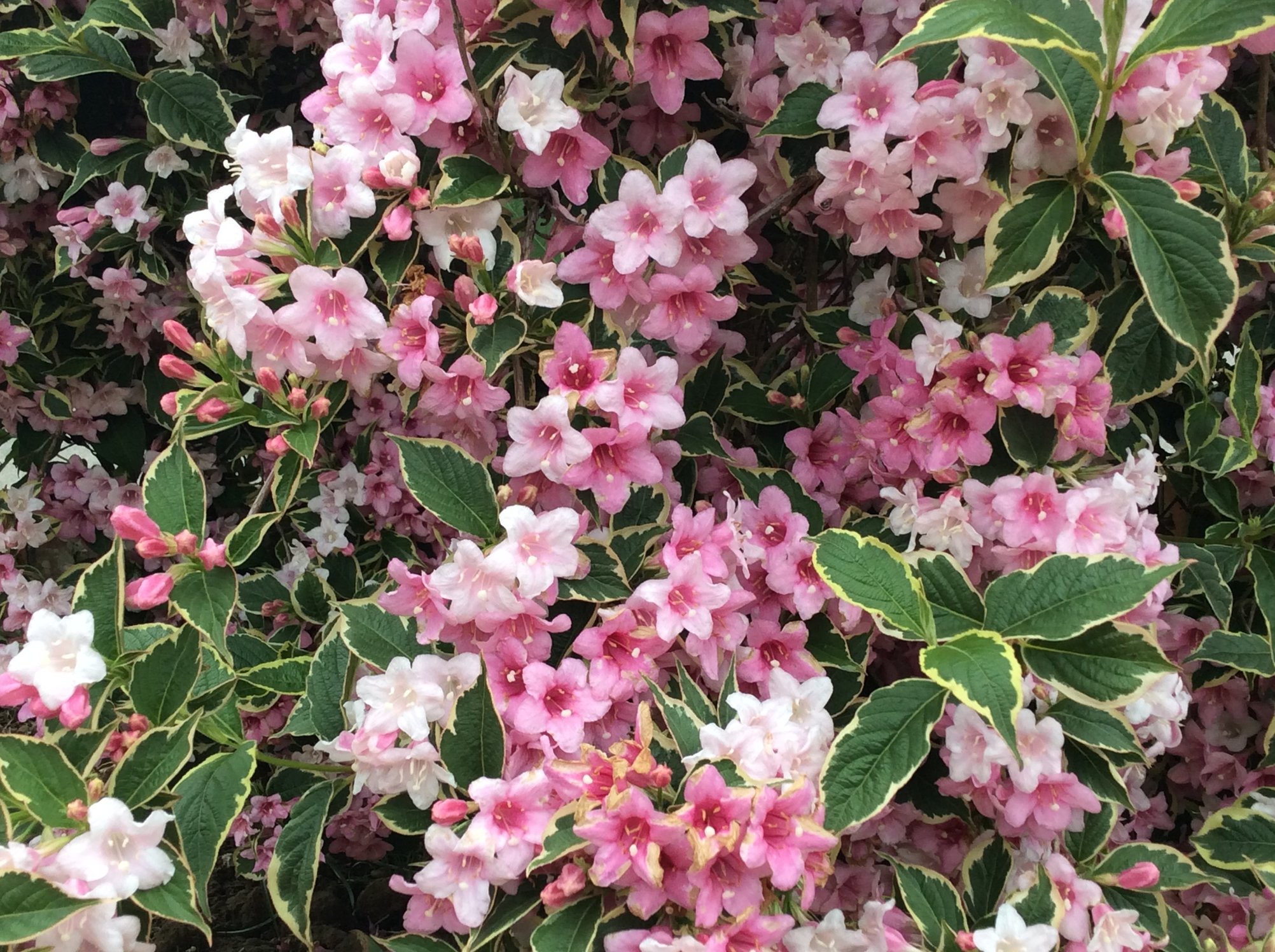 Lovely photos have really cheered me up so I will add a couple of my own Varigted weigelia with allium purple sensation my kitties playing in my Rhododendron Sappho. The way the kittens use it as their own jungle gym I am amazed there is any blooms left on it.