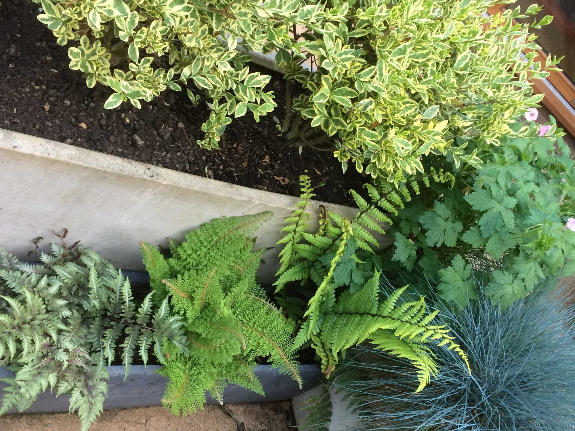 Athyrium Burgundy Lace, Polystichum setiferum, Dryopteris Wallichania, Festuca Glauca