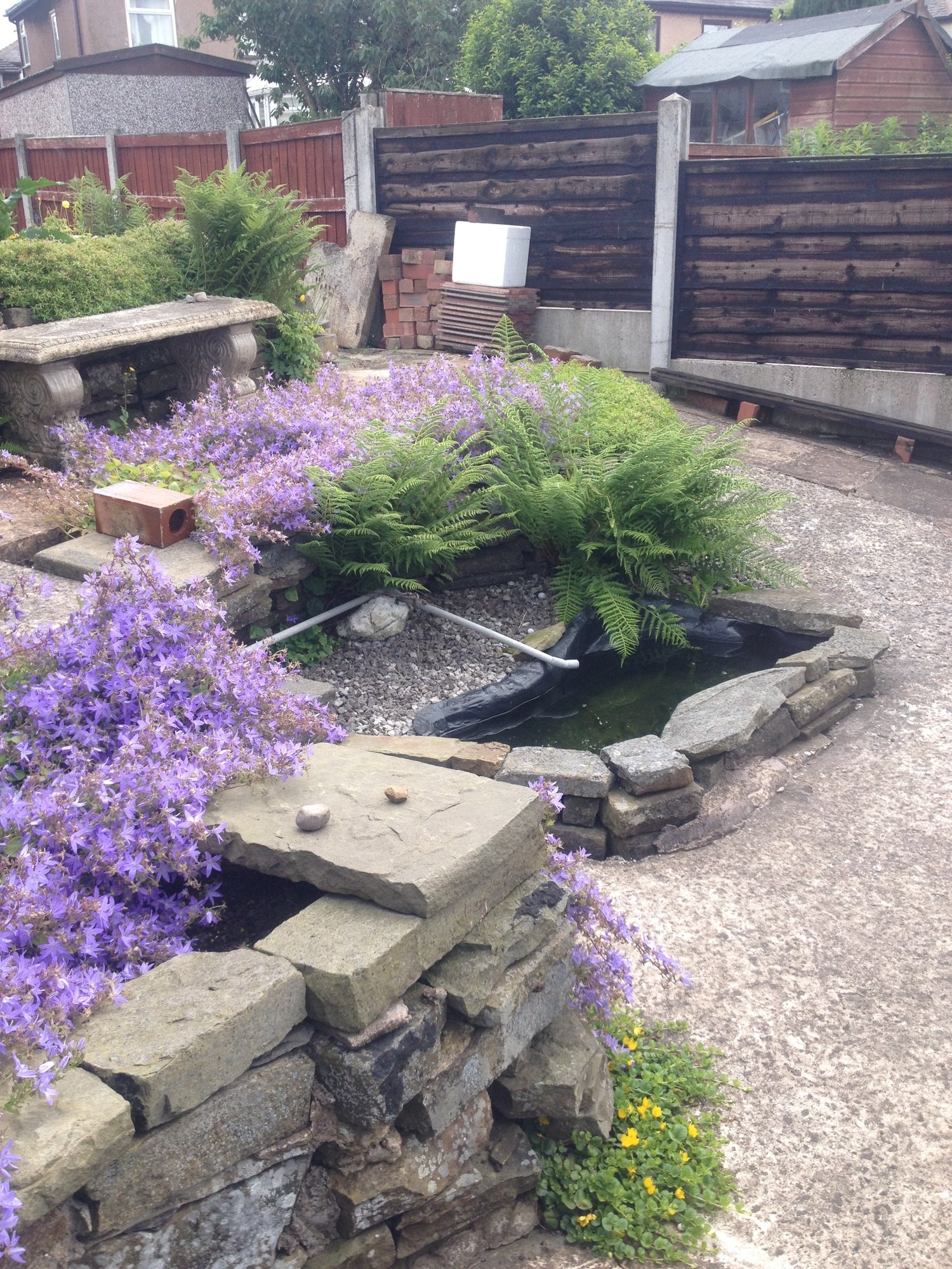 Went to visit my parent today and sat in there lovely garden, my dad had bought to many Geraniuns white ones, so he gave them to me, well I couldn't say no 😀, this is some pictures of there pond/rockery ........