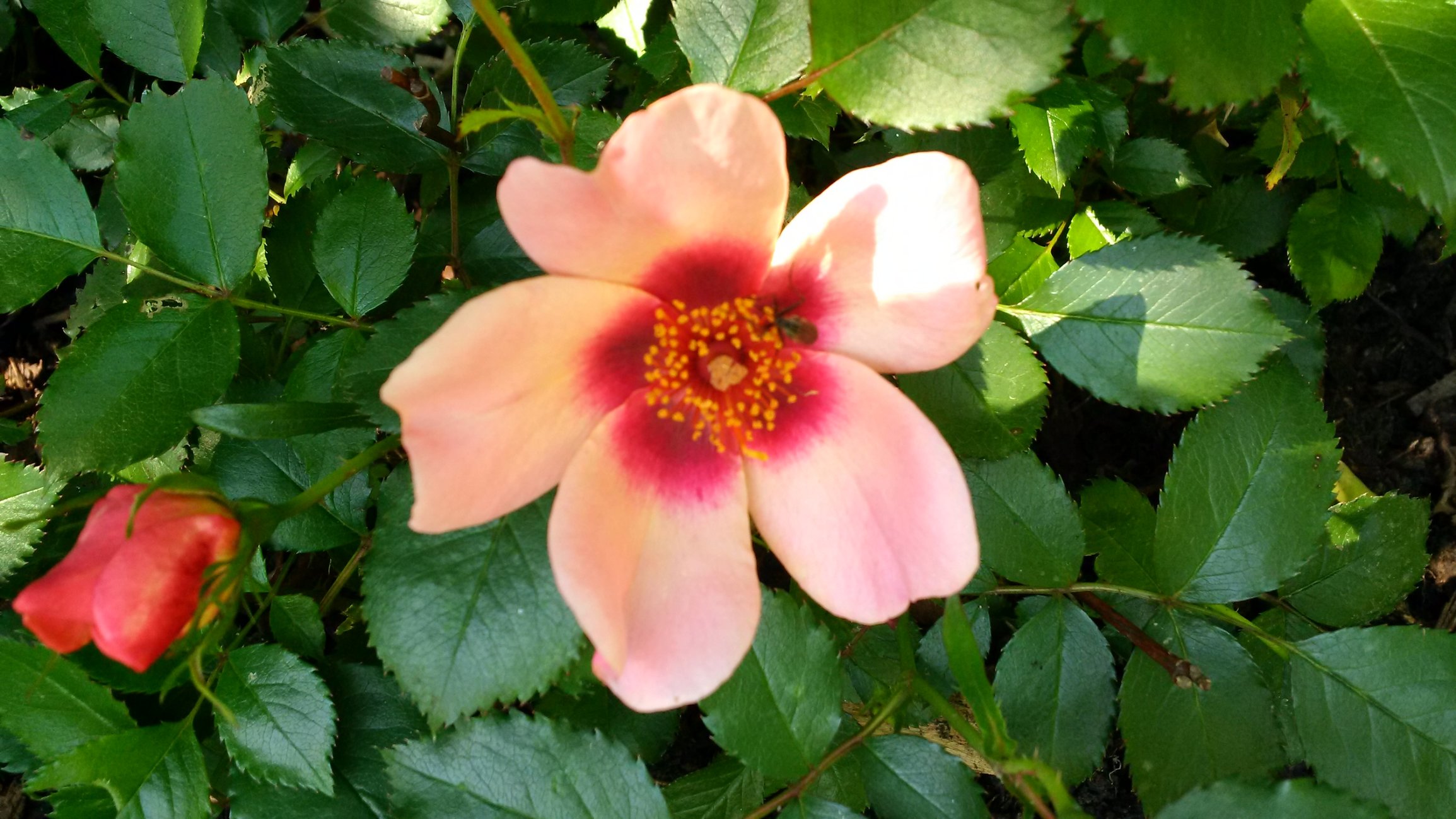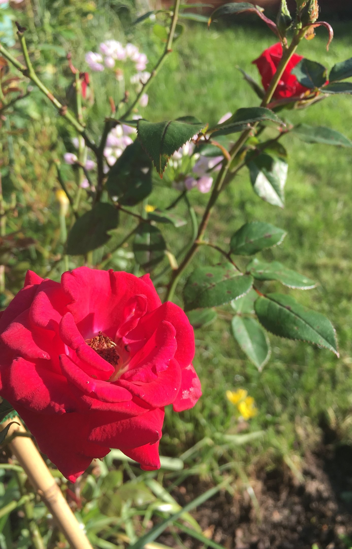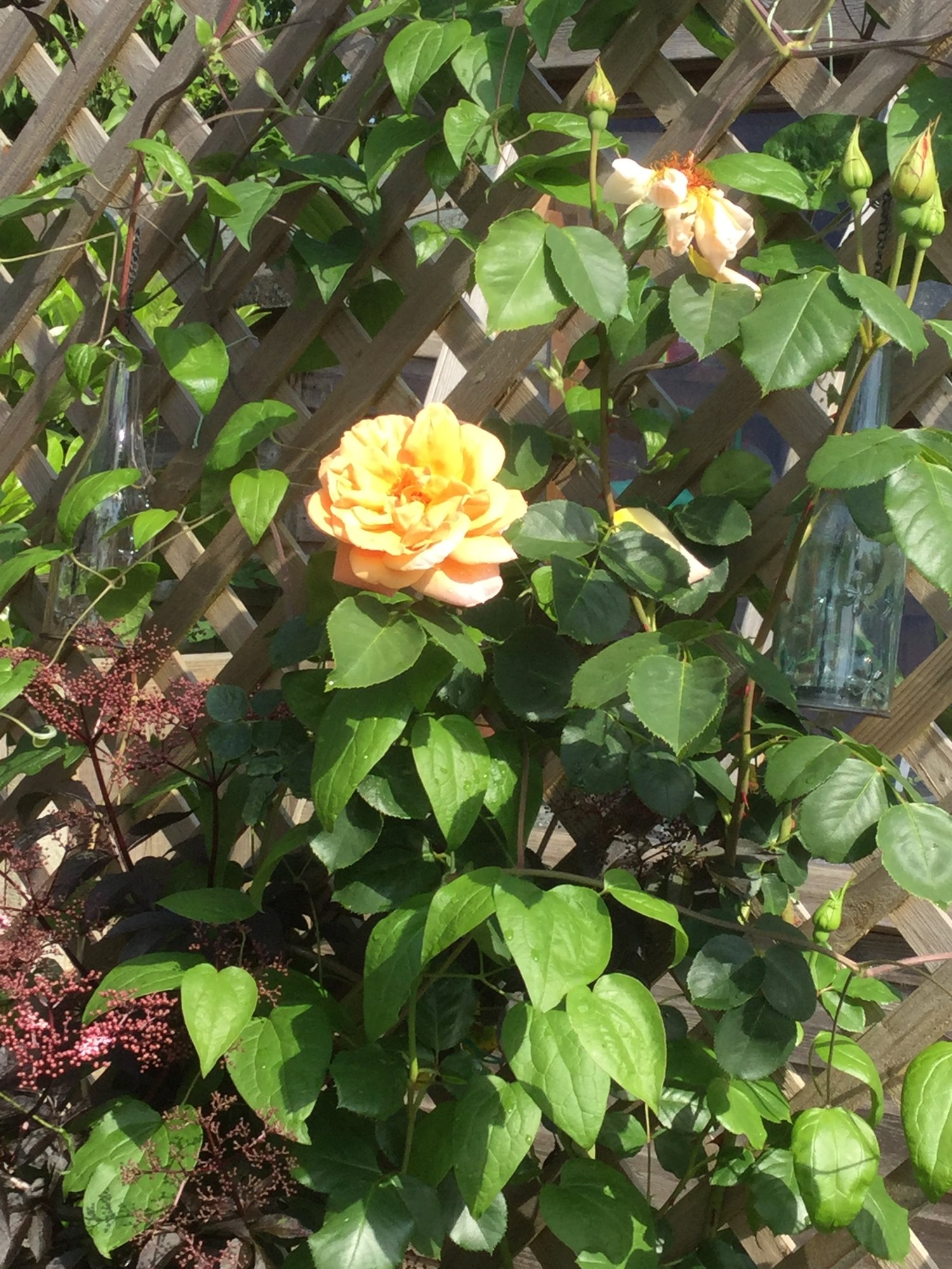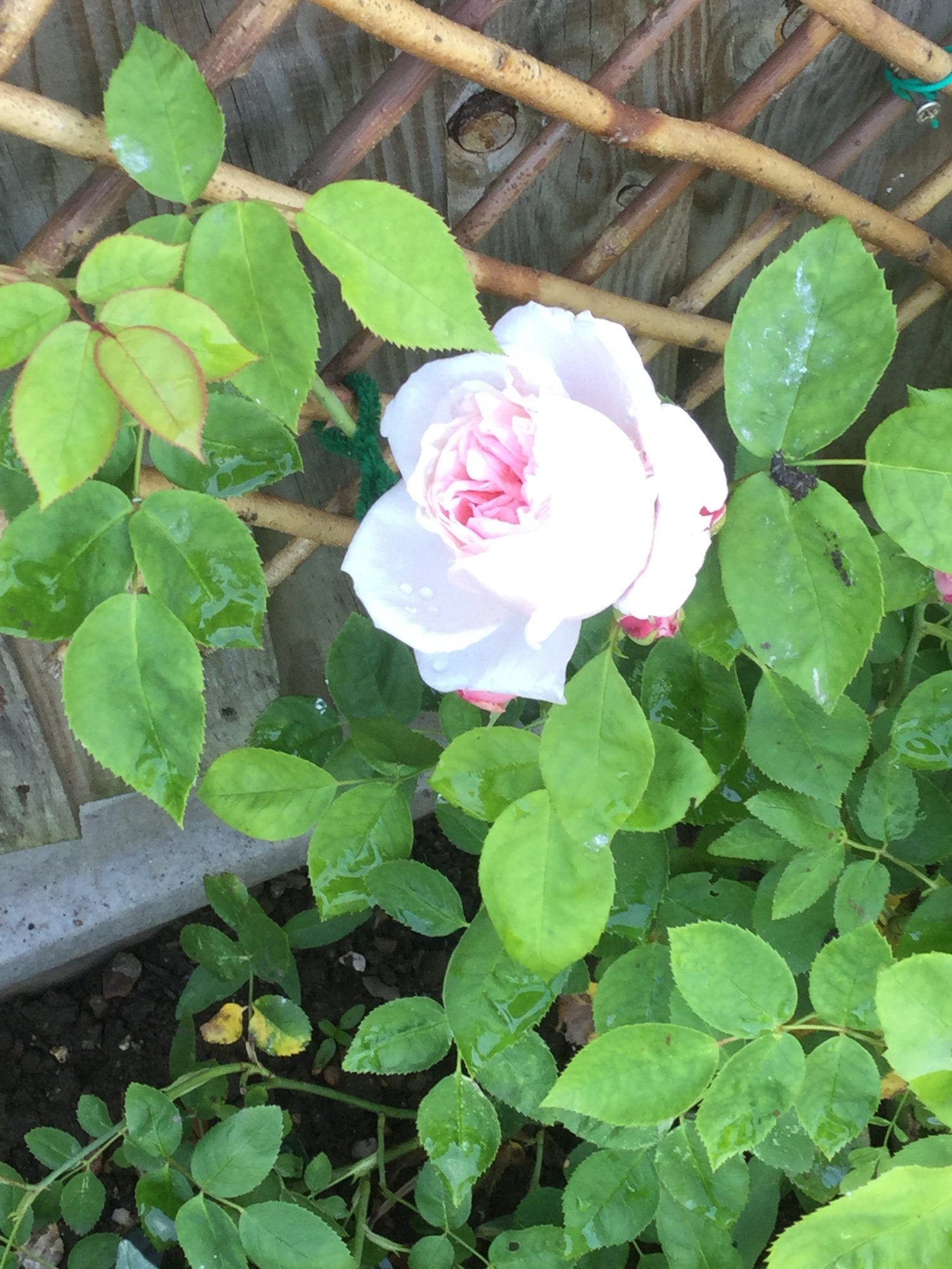 Not sure what this climbing rose is called but flowering for its second season and looking good, just keep squishing the aphids.
