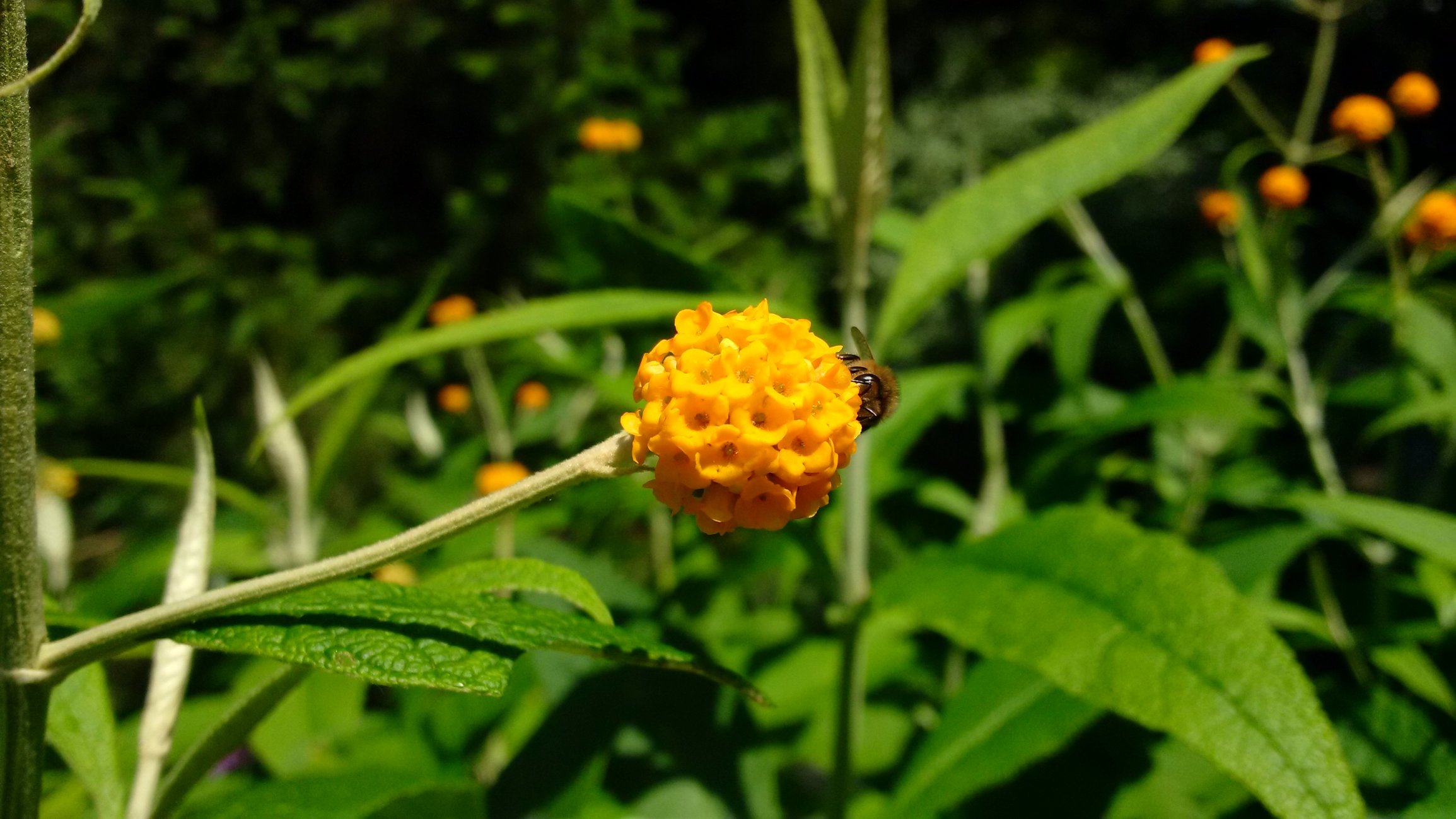 June is here and much to the delight of the bees it's time for orange balls (Buddleia Globosa)
