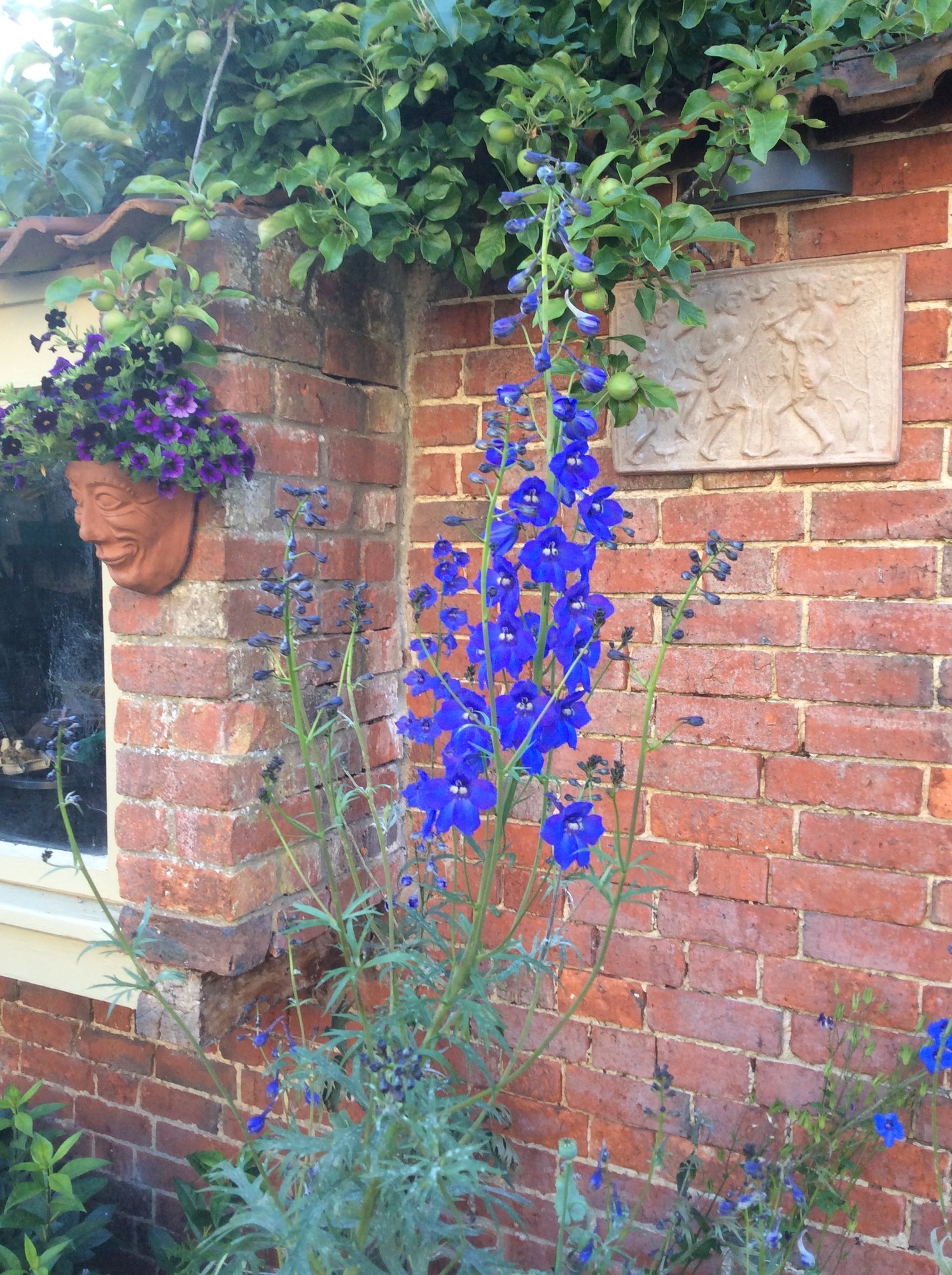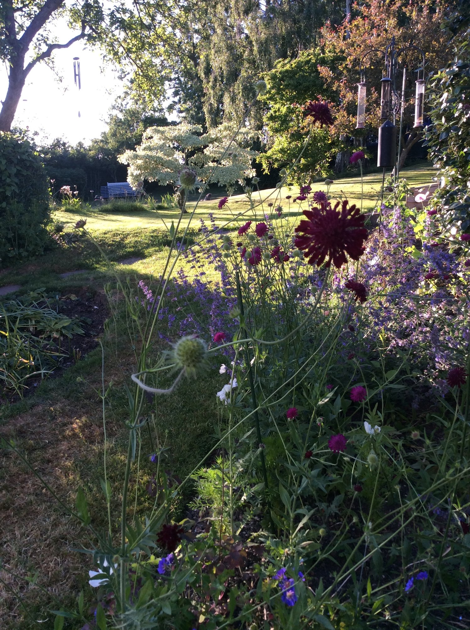 Recent new addition Rose lady of Shallot ( below ), she has geranium Rozanne - astrantia hadspen blood planted in front of her, saliva uliginosa - phlox lynden bell - delephinium behind with another new addition behind the delphinium - thalictrum Anne
