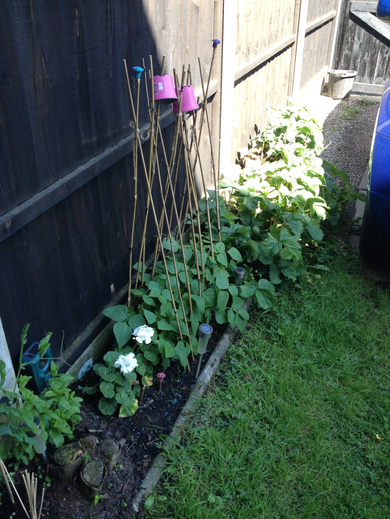 Yes I know what you mean fire, mine have only just started flowering, I'm re-potting my small hanging baskets soon whilst catching some rays 😉 For the first year I am growing mini green beans, I've grown them from seed, you can see them in my picture next to all my strawberries.