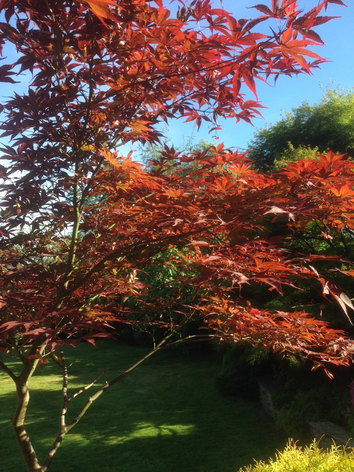 The light made my Acer palmatum Atropurpureum glow orange today (it is a purple/red leaf - honestly!):