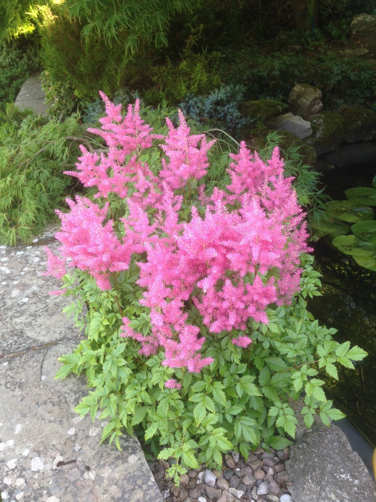 An Astilbe looking ridiculously fluffy, in the cool shade by the pond: