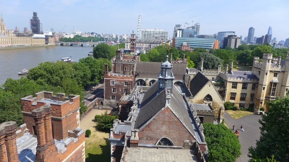 Here are some of mine. First, the view over Lambeth Palace from the Garden Museum tower, which was built in 1377 and has 131 steps (in this heat!!!):