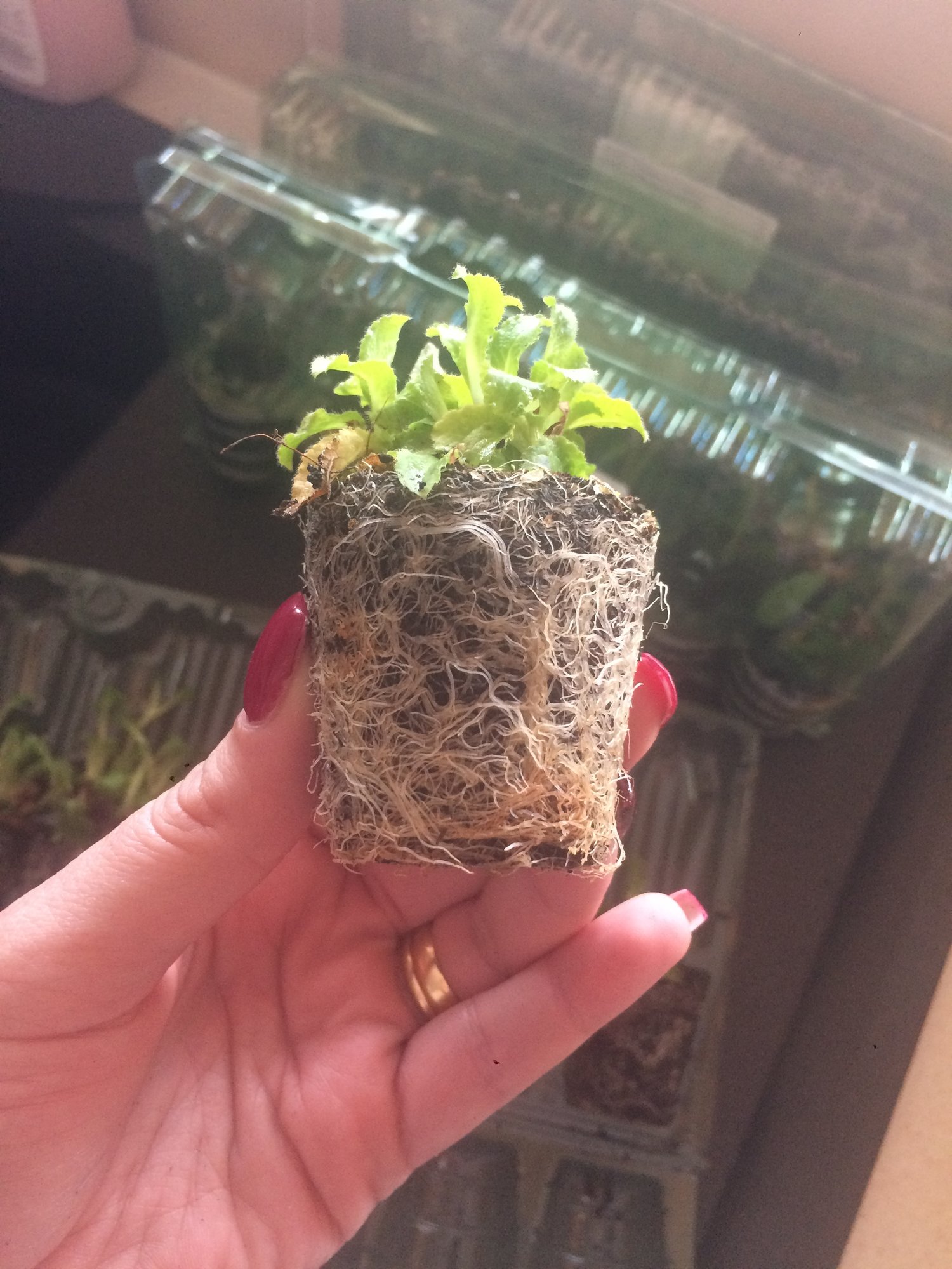 have just received a batch of perennial plug plants from Parker’s... they’re in plastic boxes as shown. What do I do with them now? I was going to pot on and put in my mini greenhouse but it’s going to be chilly, so I’m thinking water well and a windowsill until it warms up? Help please x