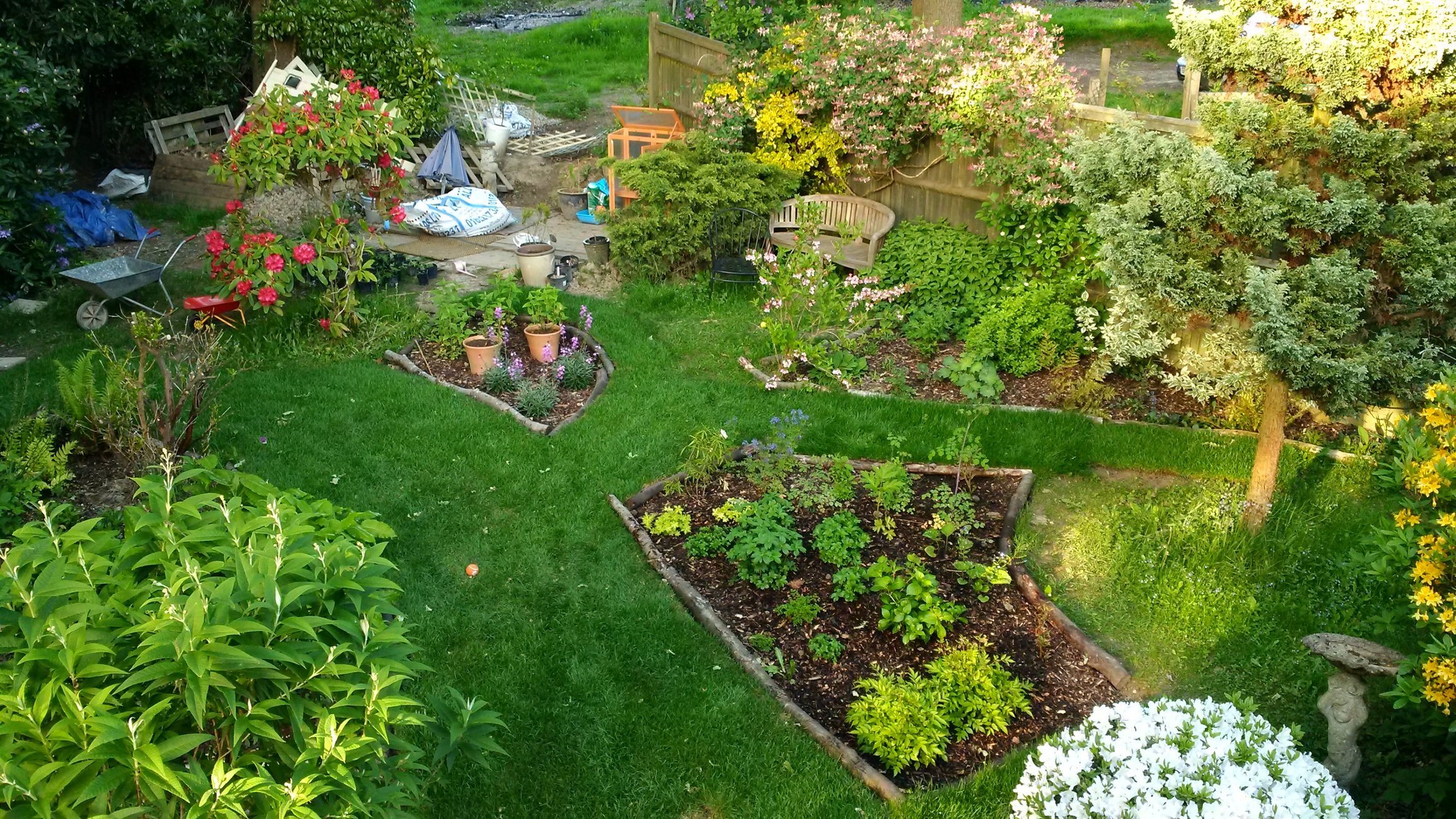 What a difference a couple of months make. In March my new borders were under water and the garden looked a barren and unforgiving place. Fast forward to May and it's like a different world (the new turf helps!)