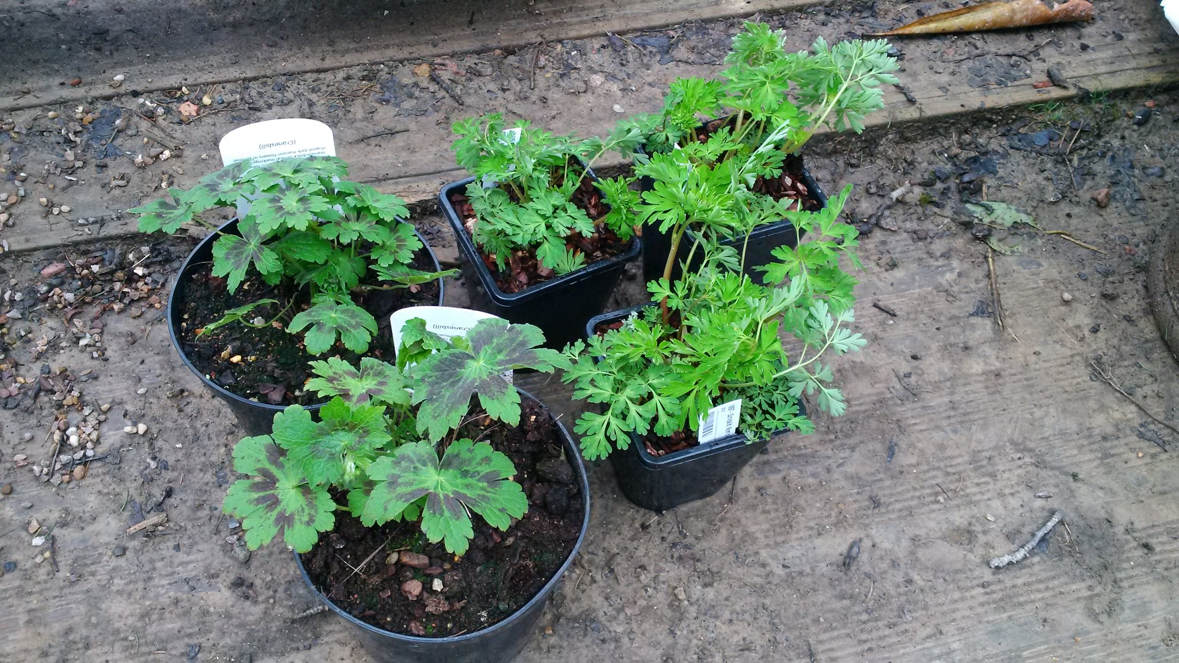 2 x Geranium phaeum 'Samobor' courtesy of Rapkyns; and 3 x Corydalis 'Korns Purple' courtesy of Beth Chatto